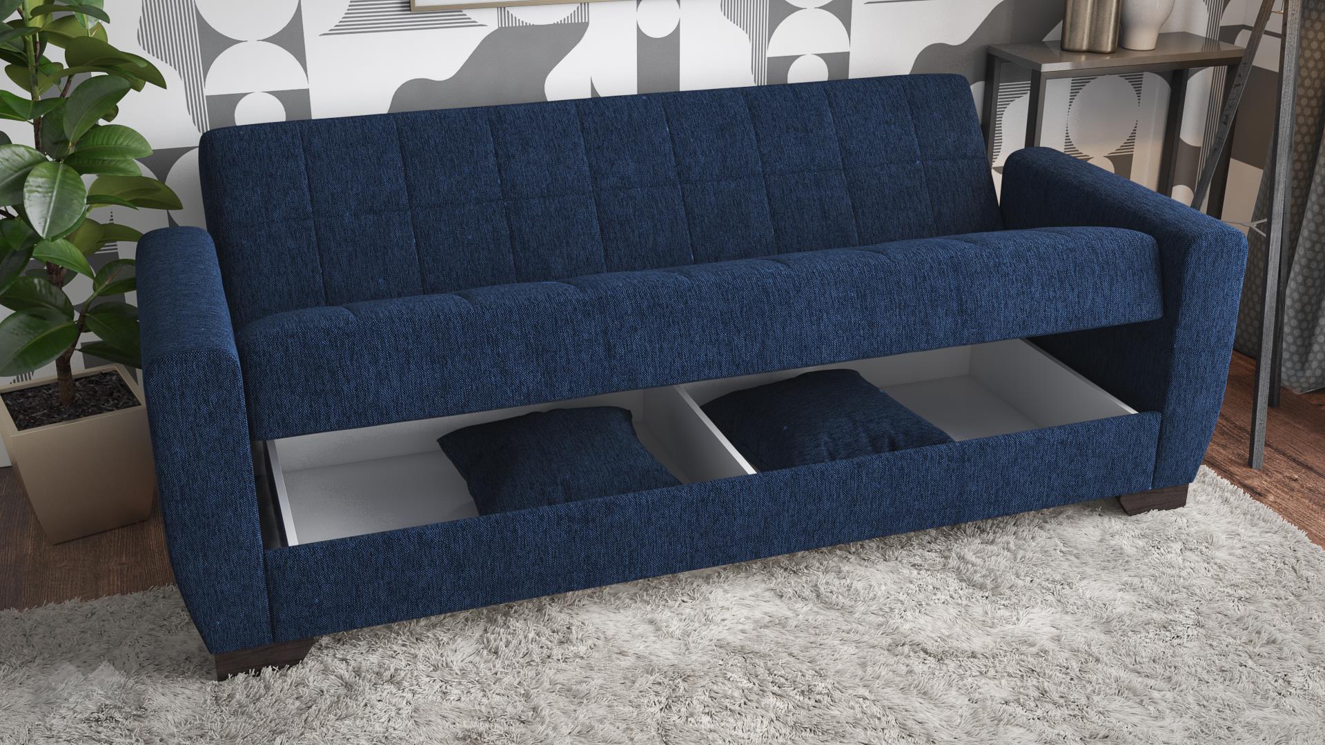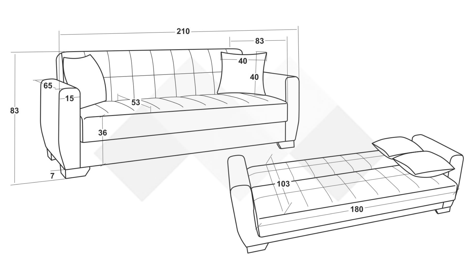 Освен че е комфортен, диван Барато е и многофункционален. С минимално усилие, за миг се превръща в широко легло, благодарение на клик-клак механизъм, а под седалката се крие просторна ракла, където да съхраняваш завивки, възглавници и други вещи. Дамаската е приятна на допир от здрав, устойчив на износване и замърсявания текстил.