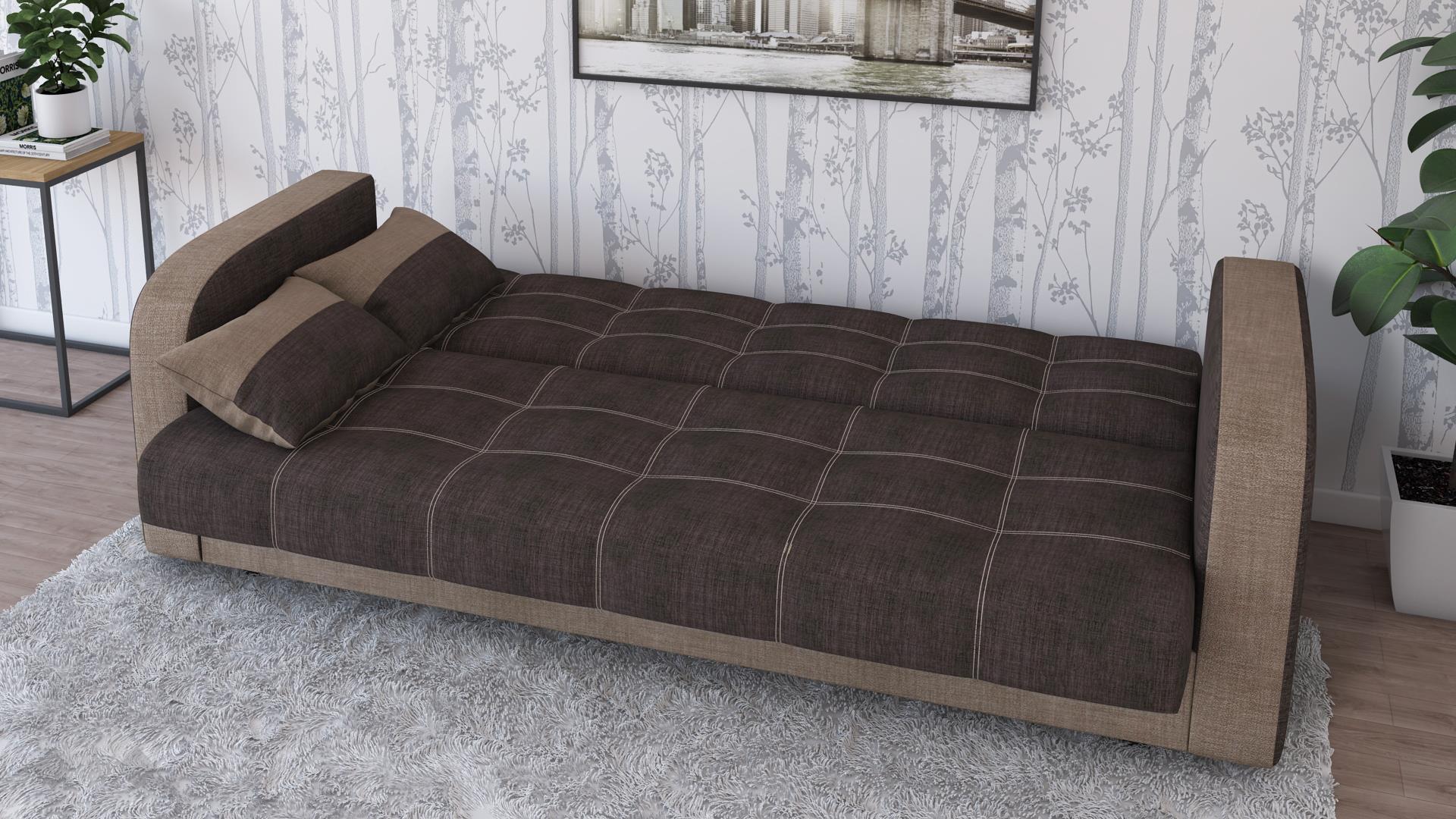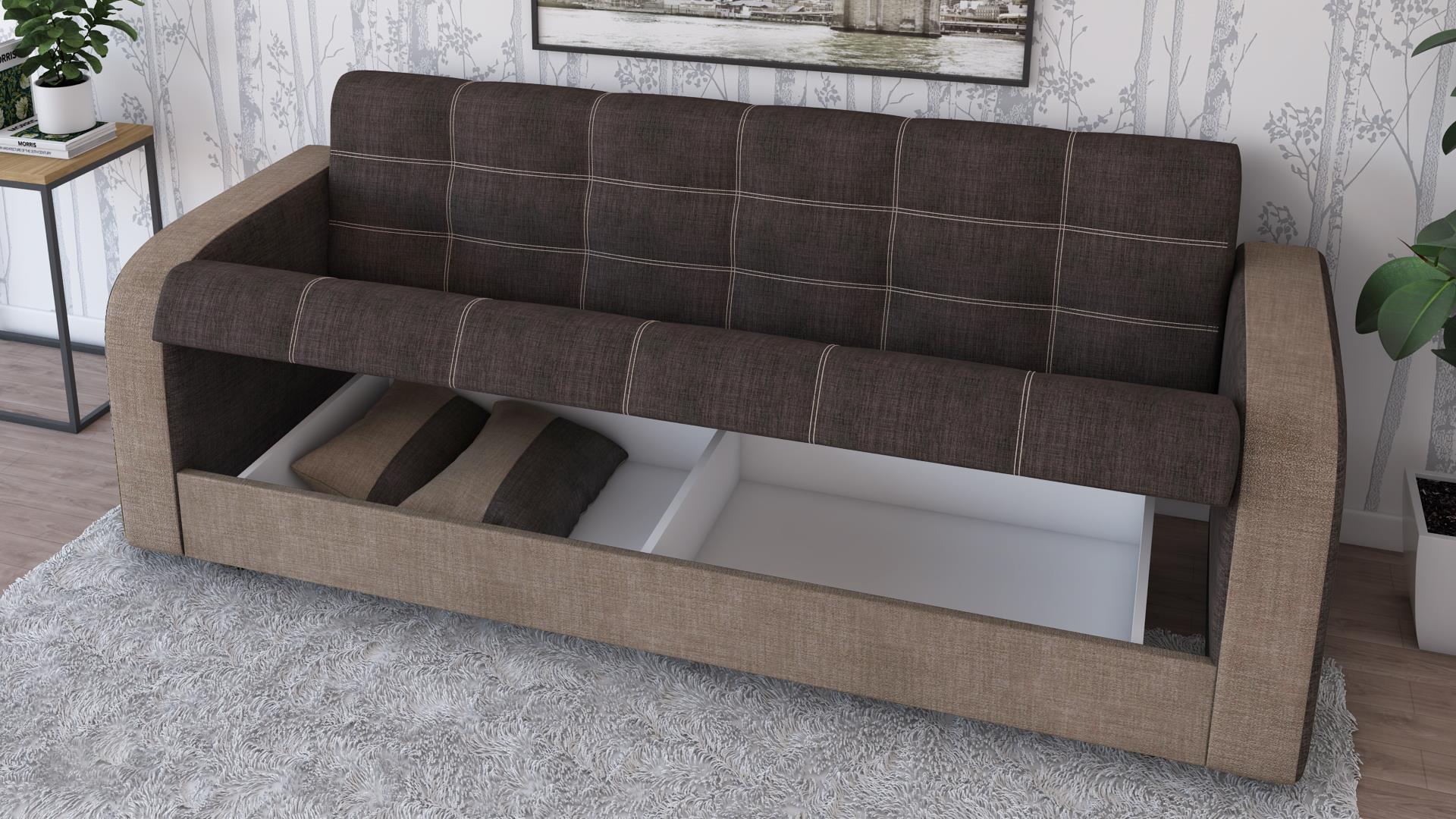 Освен че е комфортен, диван Бари е и многофункционален. С минимално усилие, за миг се превръща в широко легло, благодарение на клик-клак механизъм, а под седалката се крие просторна ракла, където да съхраняваш завивки, възглавници и други вещи. Дамаската е приятна на допир, изработена от здрав, устойчив на износване и замърсявания текстил.
