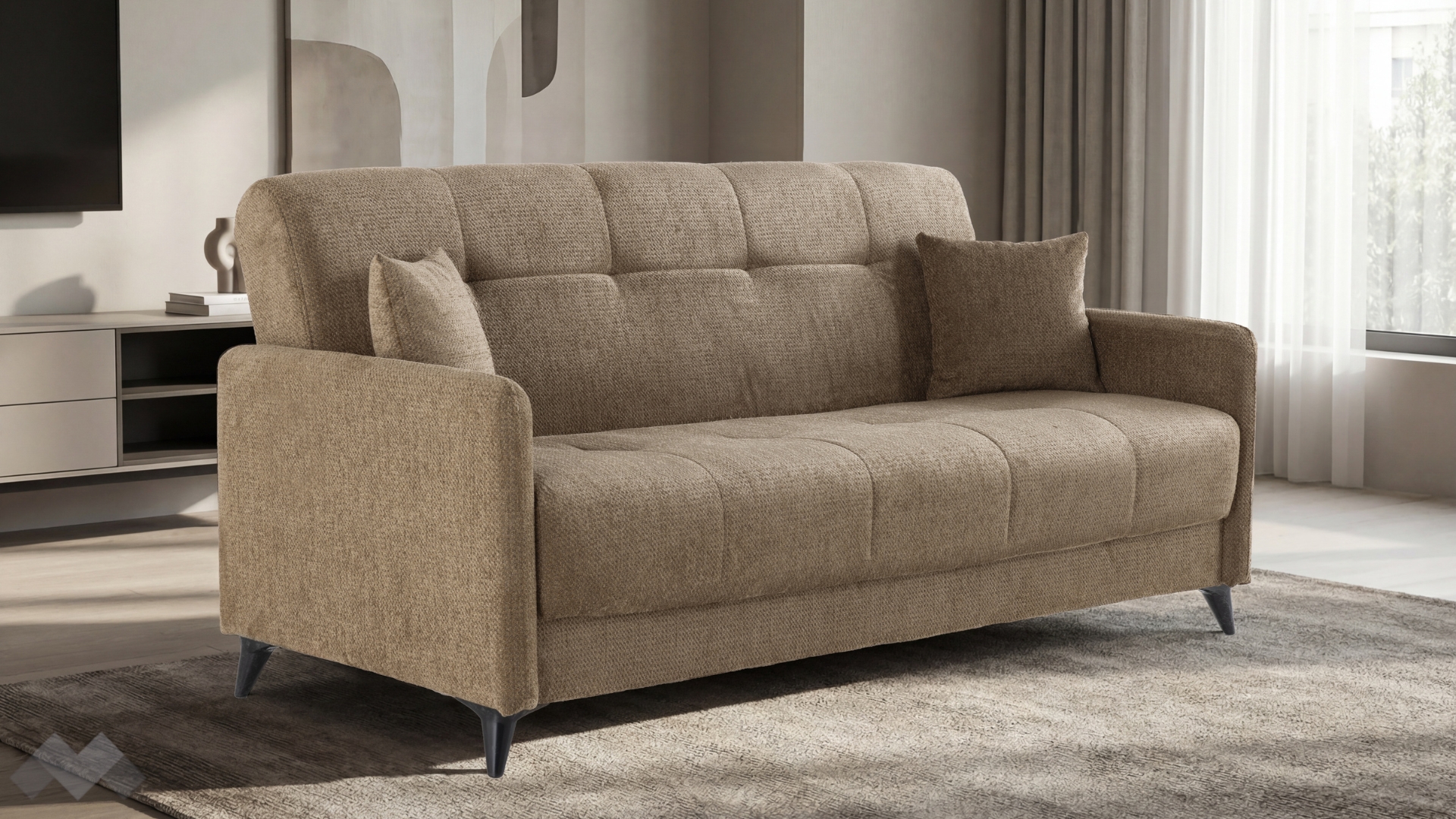 Благодарение на клик-клак механизма, диванът се трансформира бързо и лесно в удобно легло с площ за сън 190/122 см. Само с едно движение можеш да го разгънеш или прибереш, което го прави изключително удобен за ежедневна употреба или за настаняване на гости. Моделът разполага с практична ракла под седалката, което е изключително удобно за поддържане на подредения вид на стаята.