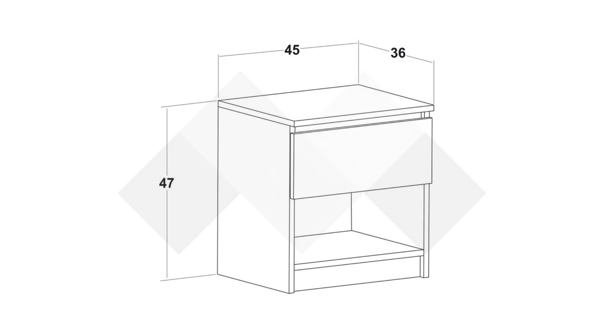 Нощен шкаф Борей е идеален за поставяне до леглото, осигурявайки лесен достъп до всичко необходимо през нощта или рано сутрин. Шкафът разполага с рафт и чекмедже, които предлагат удобно пространство за съхранение на книги, списания или други лични вещи, които искаш да бъдат на една ръка разстояние.