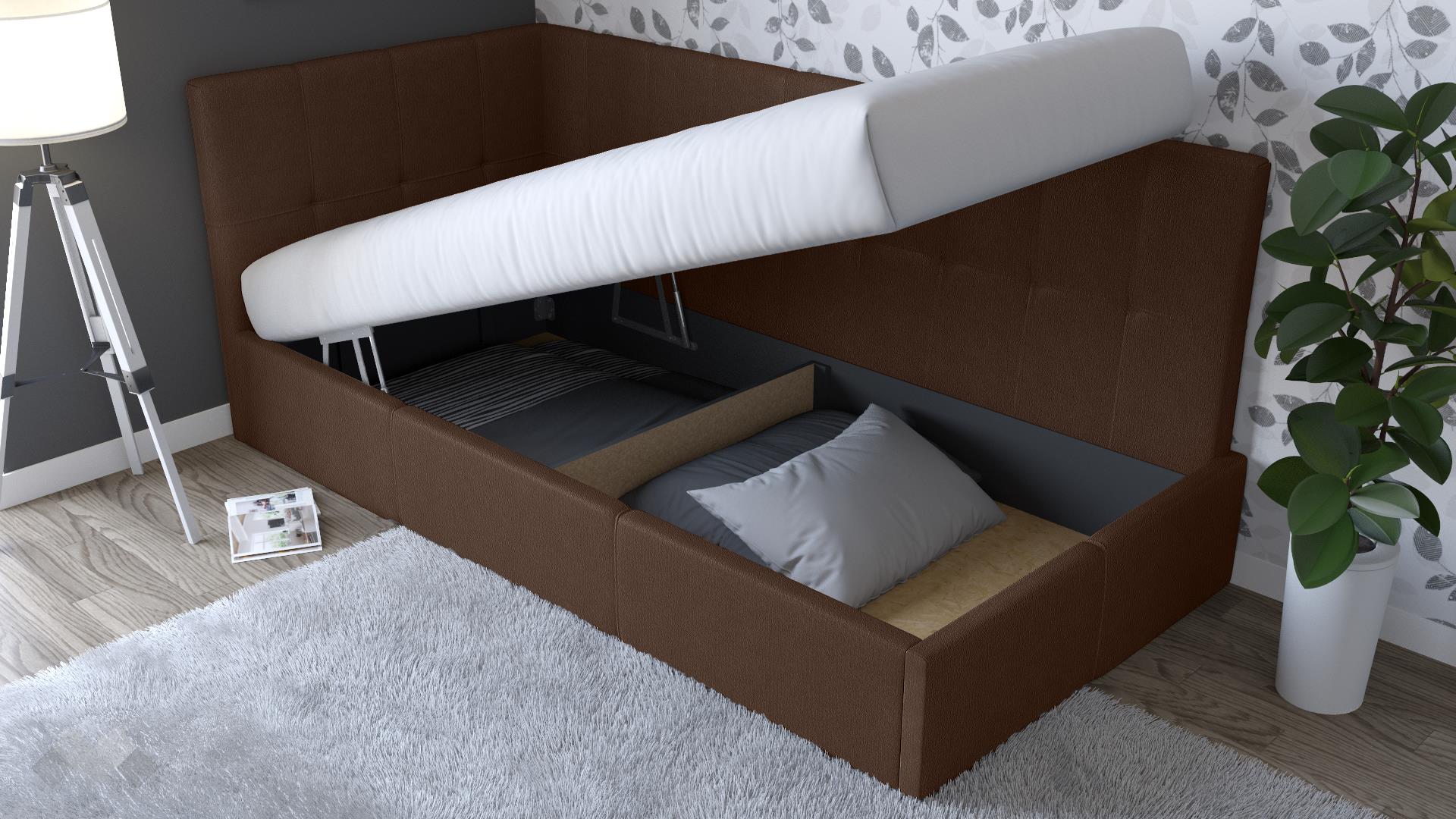 Леглото е с меки форми и елегантен дизайн. Подходящо е за матрак 90/200 см. Под матрака се открива широко пространство, готово да побере всички възглавници и завивки, на които все не намираш място. Така не се налага да закупуваш допълнителни шкафове у дома и пестиш пространство и пари.