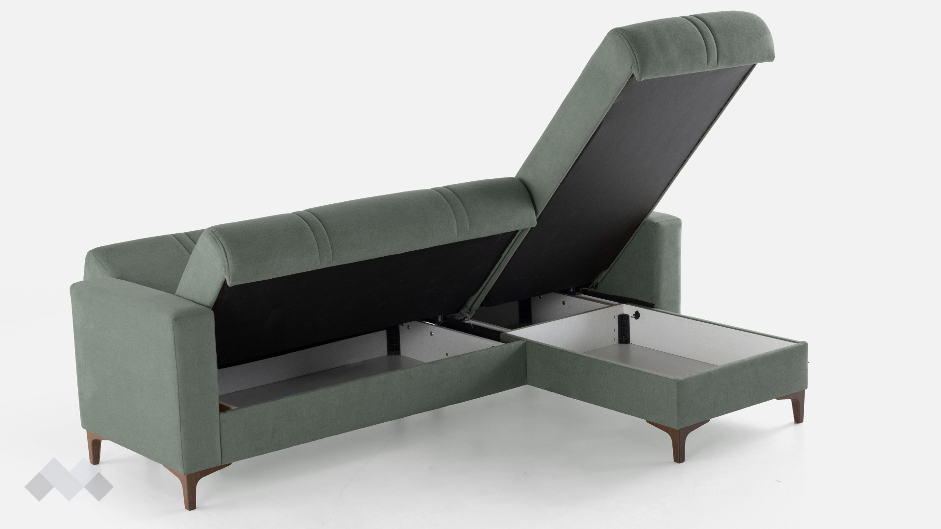 Този модел разполага с клик-клак механизъм за лесно преобразуване в легло - 115/187 см., отличен избор както за дневна употреба, така и за нощен сън, предоставяйки комфорт и практичност. Още един плюс е раклата - практичното решение за поддържане на ред и организираност в дома, като същевременно не се губи функционалността на дивана като мебел за сядане и отдих. Внимателно подбраните цветови нюанси придават на ъглов диван Браво различен характер и настроение, позволявайки ти да избереш най-подходящият вариант за твоя интериор.
