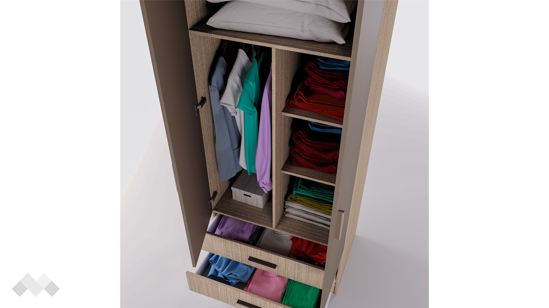 Благодарение на практичното разпределение на вътрешното пространство, с лекота ще можеш да организираш и съхраняваш дрехите си, като същевременно ще имаш бърз достъп до всеки тоалет. В широките две чекмеджета е удобно да съхраняваш бельо, чорапи или други аксесоари. Комбинацията от рафтове и лост за закачалки ти дава възможност да организираш дрехите си по най-удобния за теб начин.