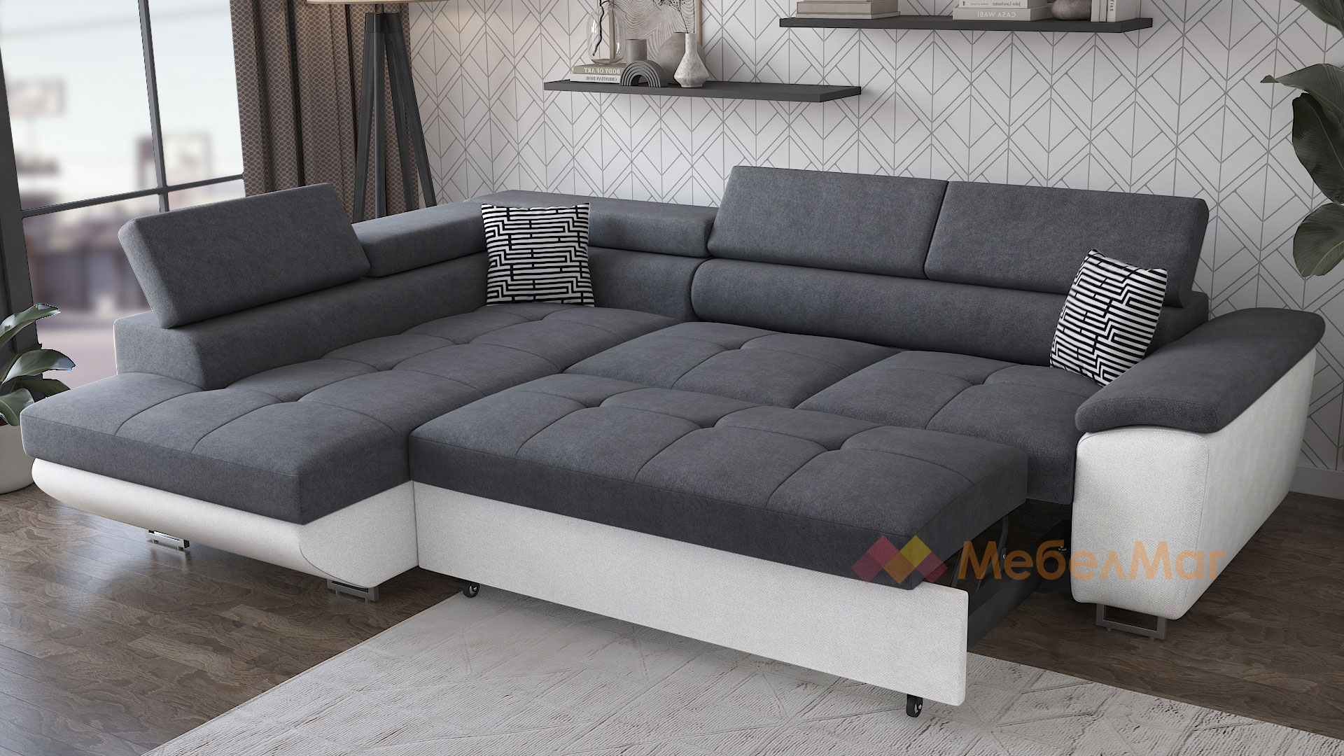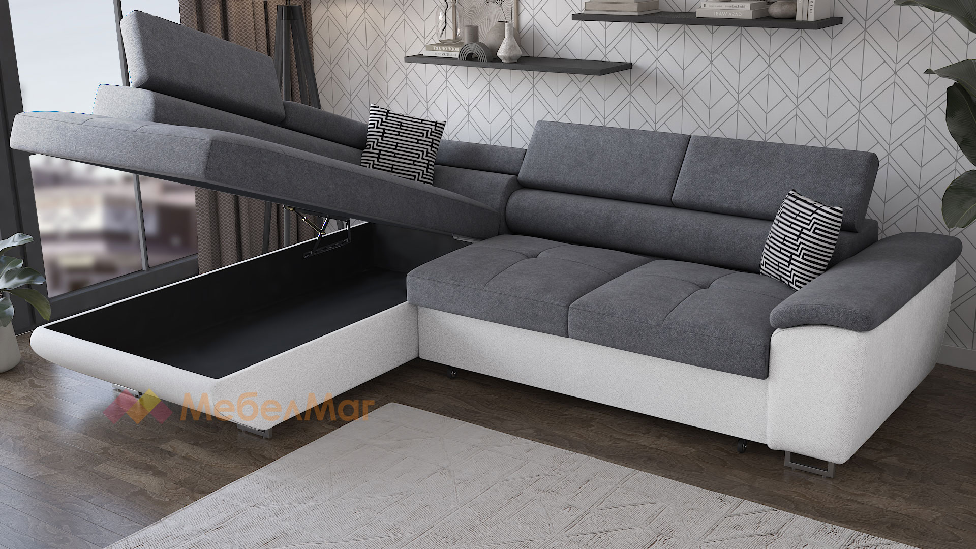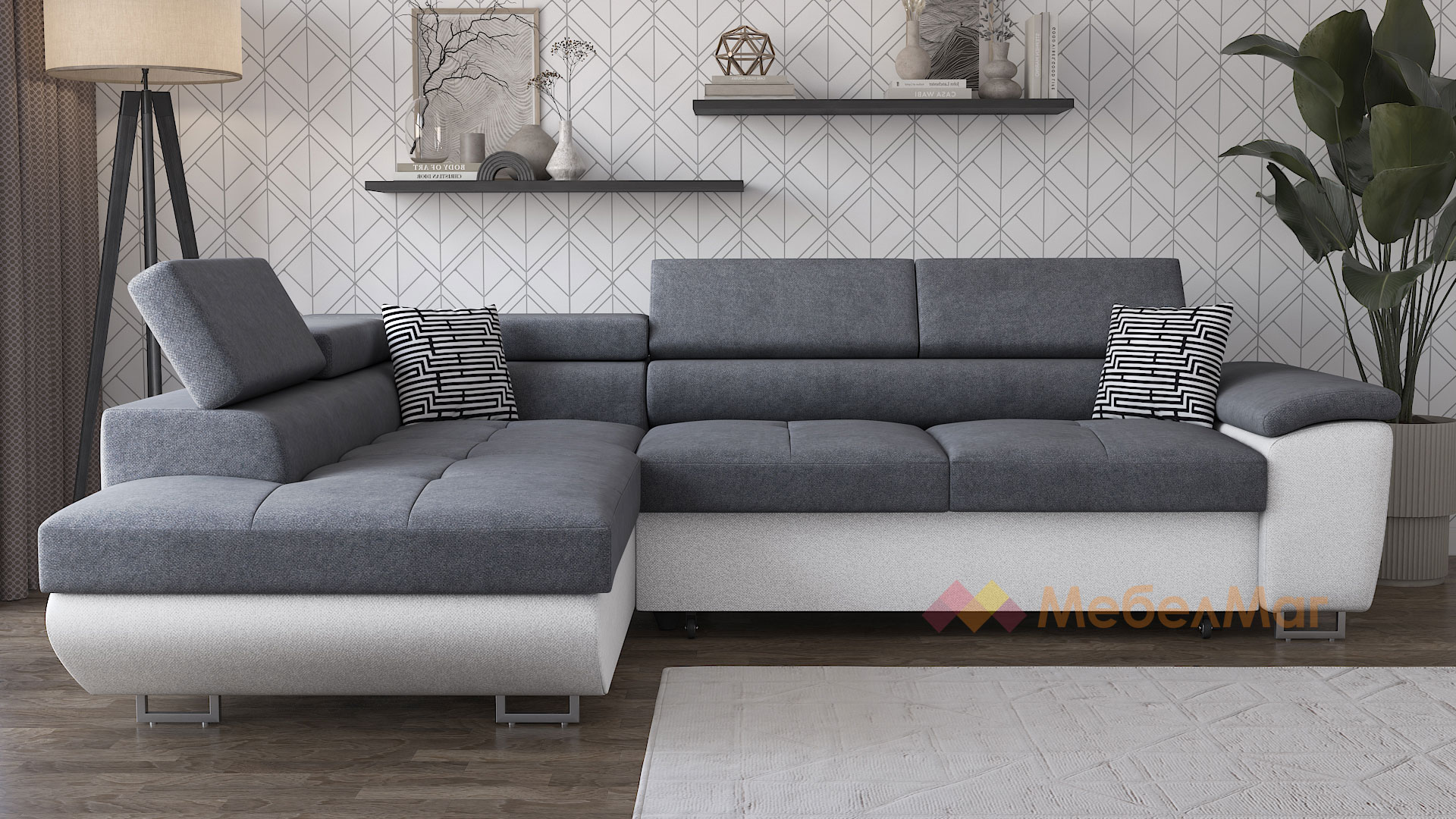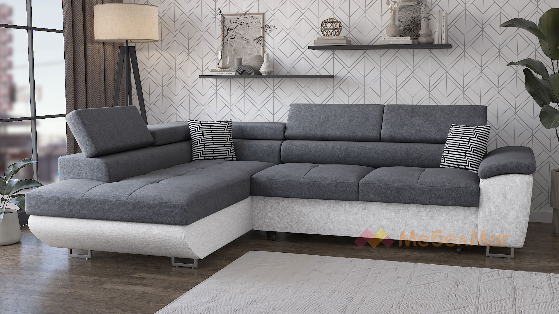 За да създадеш стилен дизайн за всекидневната или хола, се нуждаеш от вдъхновение това може да бъде ъглов диван Едуард! Той ще създаде атмосфера на комфорт и уют, която всички търсим. Цветовата нкомбинация, в която го предлагаме ще ти допаднат със сигурност. Диванът съчетава в себе си универсално сивия и елегантния бял цвят. Тези класически меки цветове ще подхождат на интериора и ще допринасят със стил и елегантност.