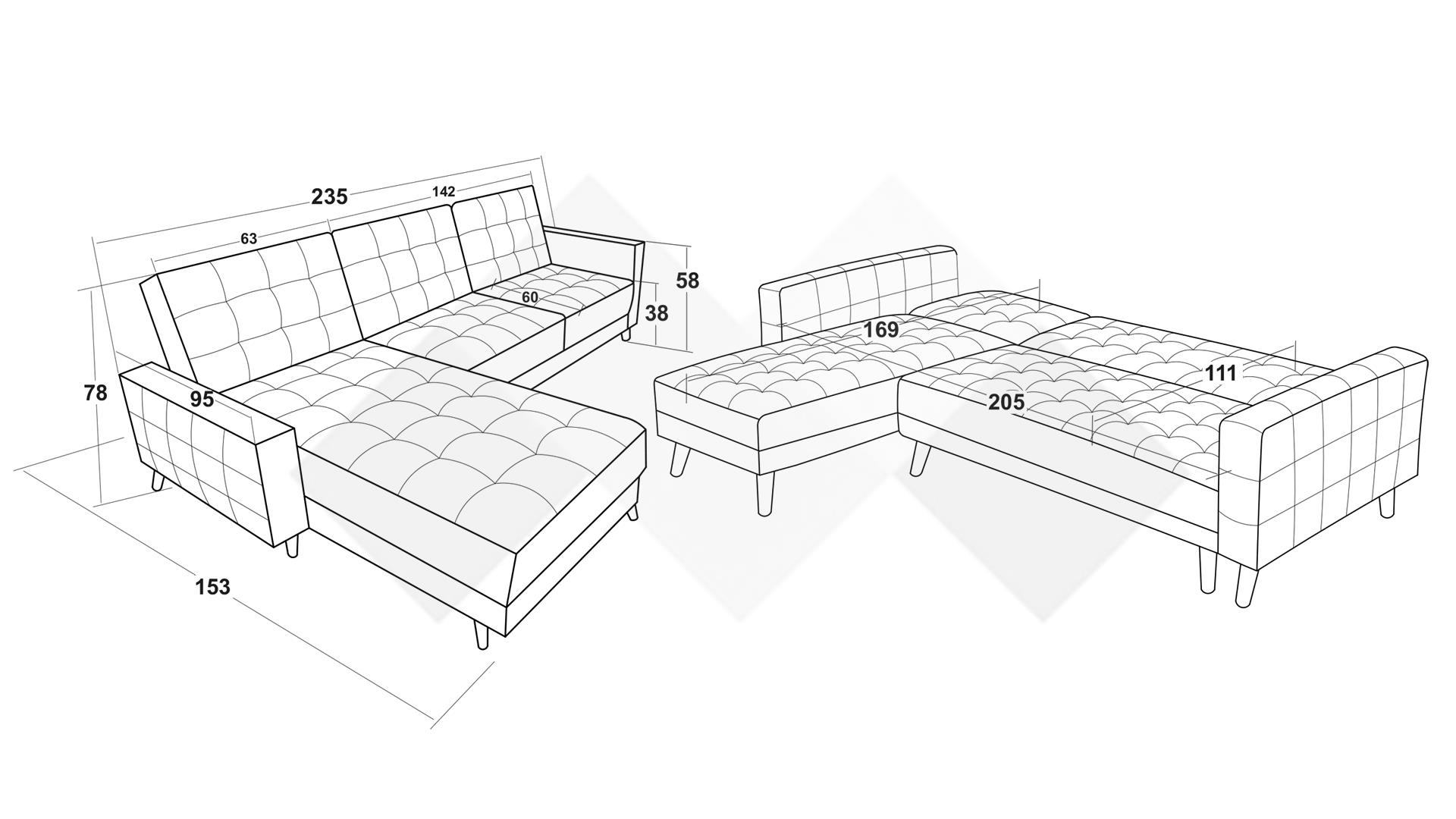 Благодарение на клик-клак механизма, диванът лесно се трансформира в голяма спална площ – идеална за ежедневна употреба или за гости. Ъгловата му конфигурация осигурява максимално използване на пространството, а комфортната седалка и облегалка създават усещане за уют и релакс.