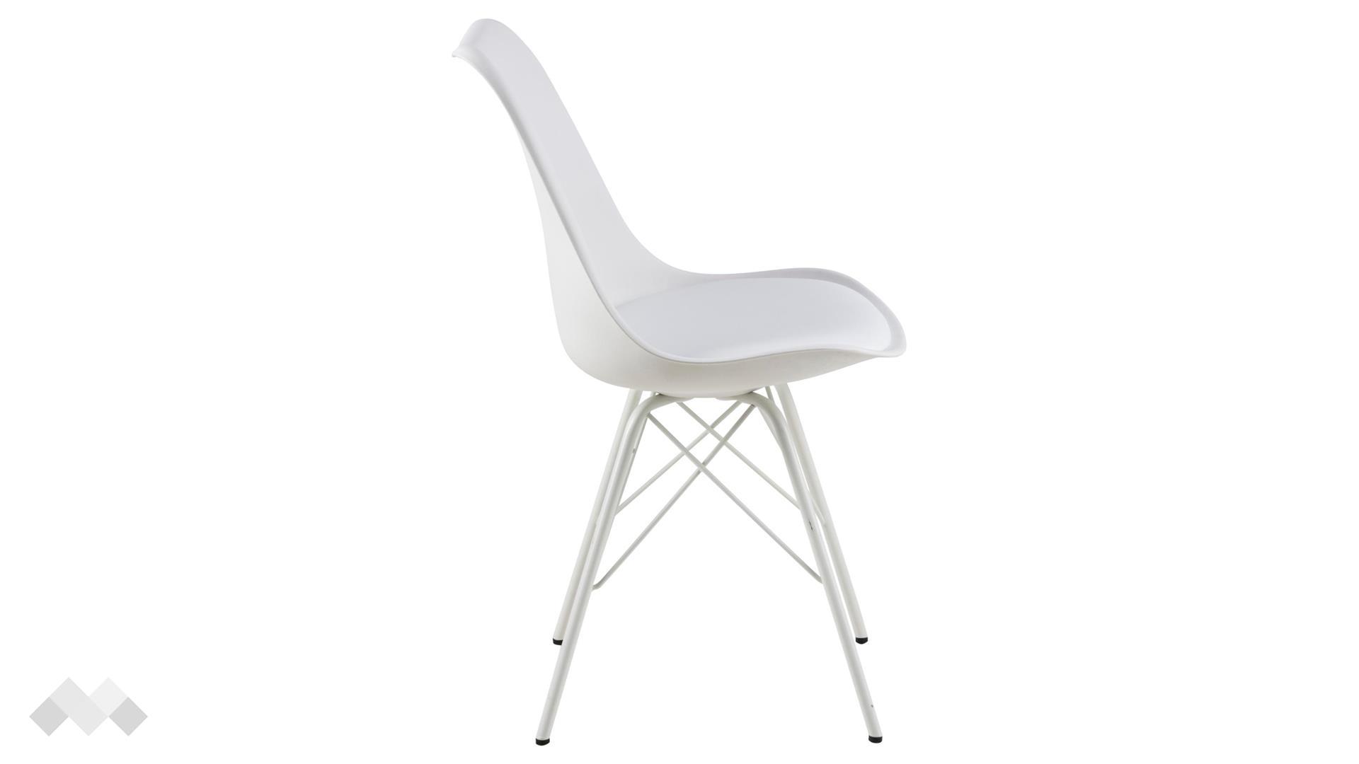 Седалката на стола е с ергономична форма, която перфектно следва извивките на тялото, предоставяйки комфорт при дълги хранения. Възглавничката от изкуствена кожа добавя мекота и улеснява почистването, а металните крака осигуряват стабилност и допълват елегантния вид.