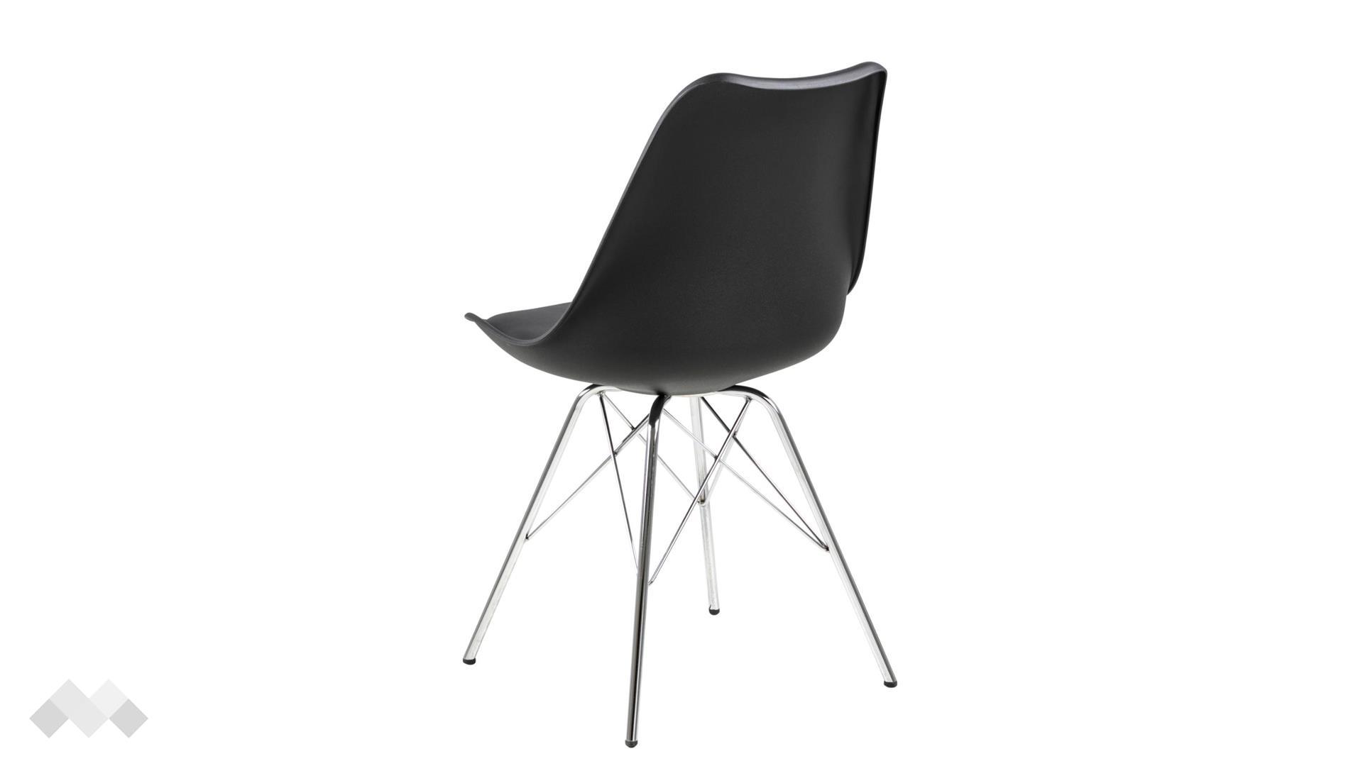 Седалката на стола е с ергономична форма, която перфектно следва извивките на тялото, предоставяйки комфорт при дълги хранения. Възглавничката от изкуствена кожа добавя мекота и улеснява почистването, а металните крака осигуряват стабилност и допълват елегантния вид.