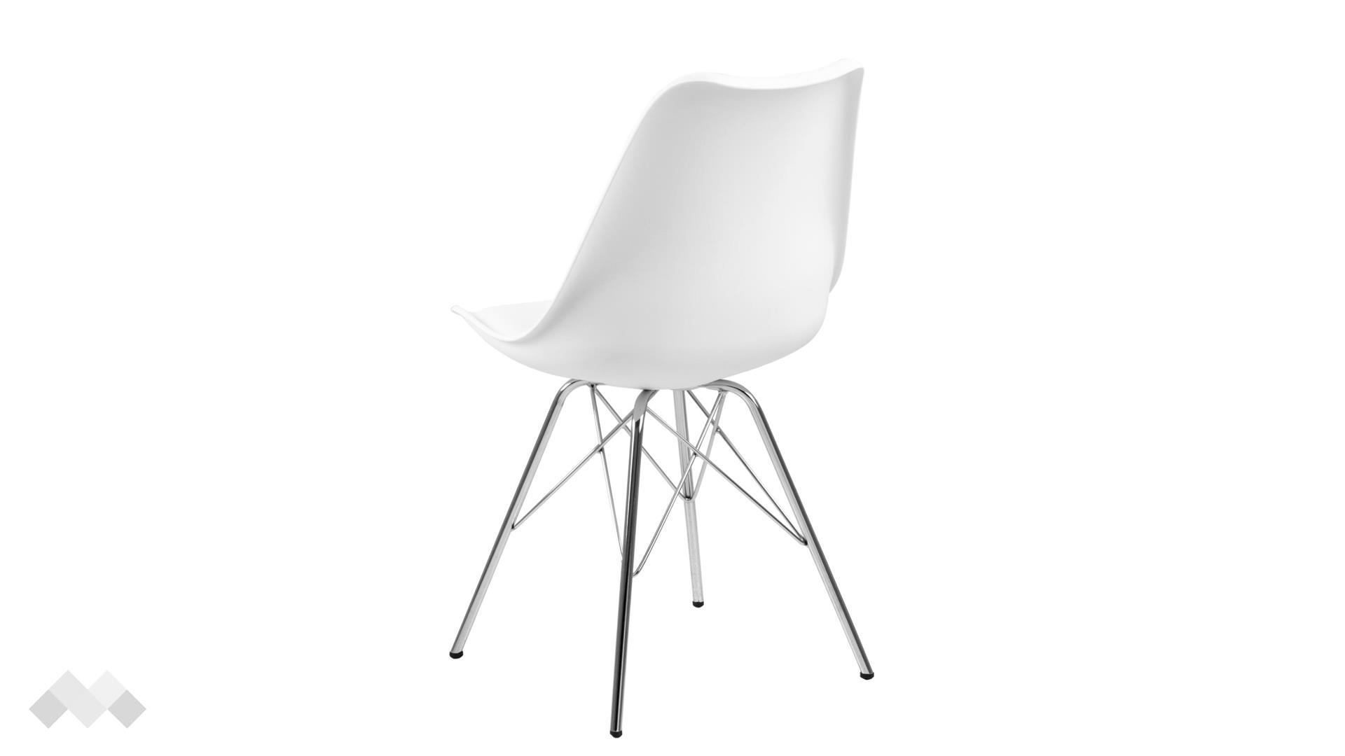 Седалката на стола е с ергономична форма, която перфектно следва извивките на тялото, предоставяйки комфорт при дълги хранения. Възглавничката от изкуствена кожа добавя мекота и улеснява почистването, а металните крака осигуряват стабилност и допълват елегантния вид.