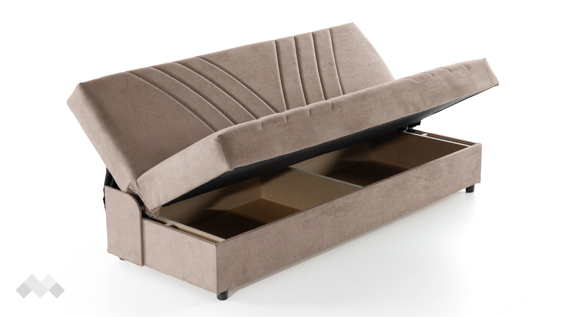 Подлакътниците са оформени с меки възглавници, които можеш лесно да премахнеш, когато имаш нужда от повече място. Така канапето бързо се адаптира според нуждите – независимо дали искаш да се изтегнеш с книга в ръка или да предложиш допълнително място за сядане. Под седалката се намира просторна ракла, идеална за съхранение на завивки, възглавници и други вещи, които искаш да държиш подръка, но скрити от погледа.