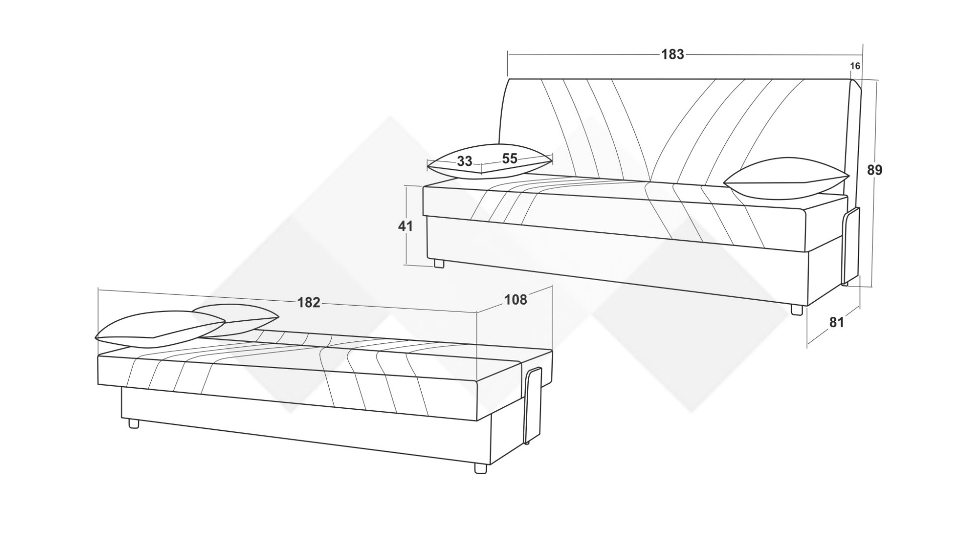Канапе Фиджи е стилно, практично и удобно решение за всекидневната, гостната или младежката стая. Със своя компактен силует и функционален дизайн, моделът е отлично допълнение към интериори с ограничено пространство, без компромис с уюта и удобството.