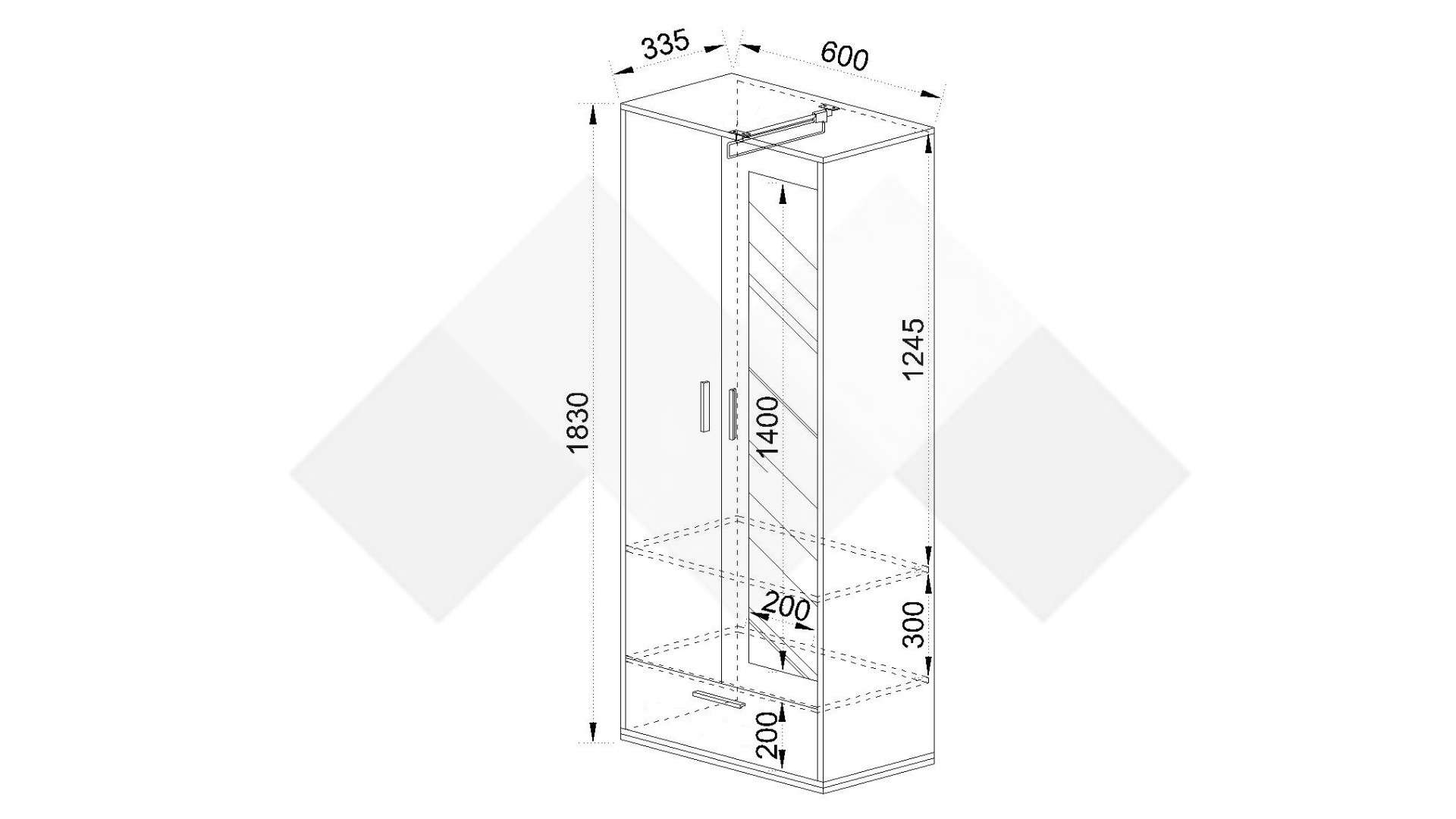 Д: 60 см Ш: 33,5 см В: 183 см
