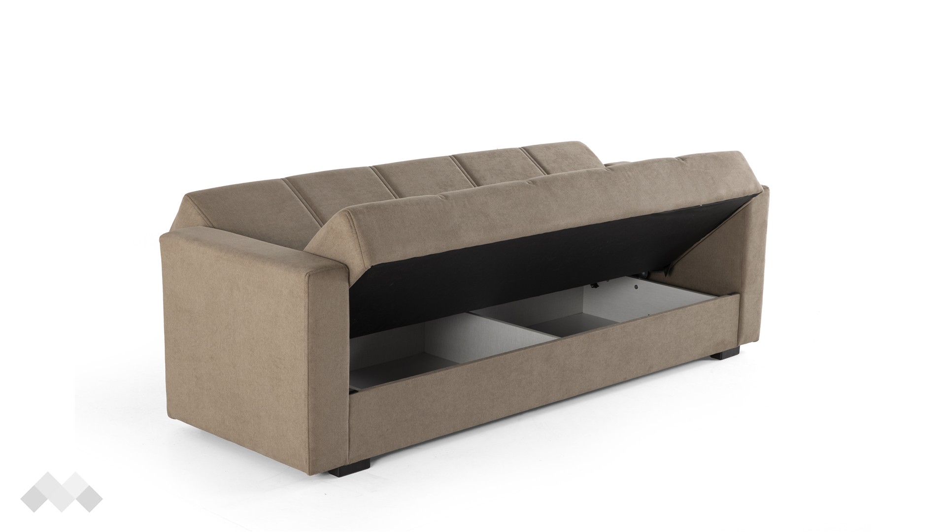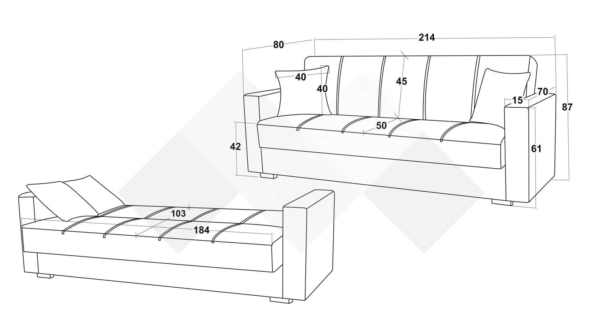 Благодарение на клик-клак механизма, диванът се трансформира бързо и лесно в удобно легло с площ за сън 184/103 см. Само с едно движение можеш да го разгънеш или прибереш, което го прави практично решение както за ежедневна употреба, така и за гости. Под седалката е разположена функционална ракла за съхранение, в която можеш да прибереш завивки, възглавници или други вещи и да поддържаш пространството подредено. Дамаската е мека и приятна на допир, изработена от здрав текстил, подходящ за всекидневна употреба.