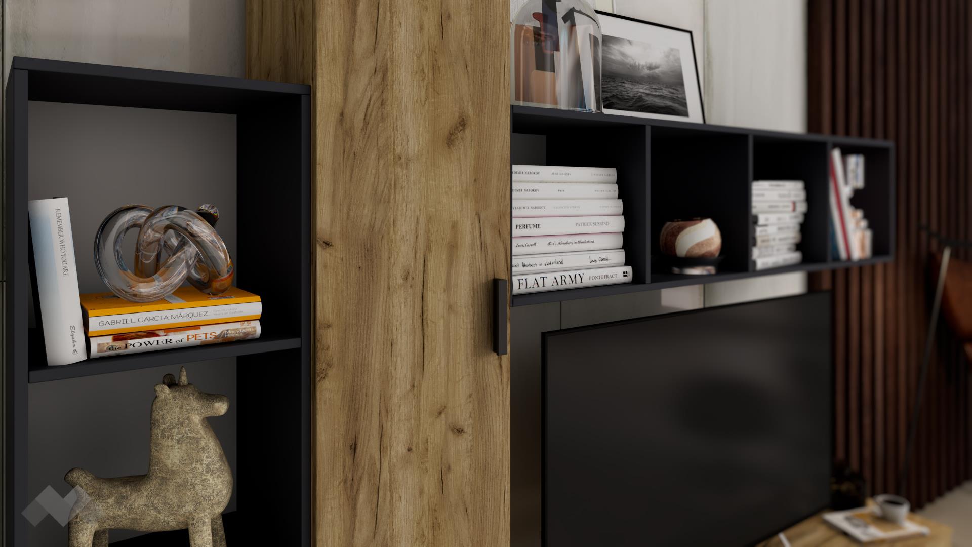✓ модерна цветова комбинация ✓ ТВ шкаф ✓ висок шкаф ✓ етажерка ✓ функционален дизайн ✓ качествена изработка ✓ 16 мм ПДЧ