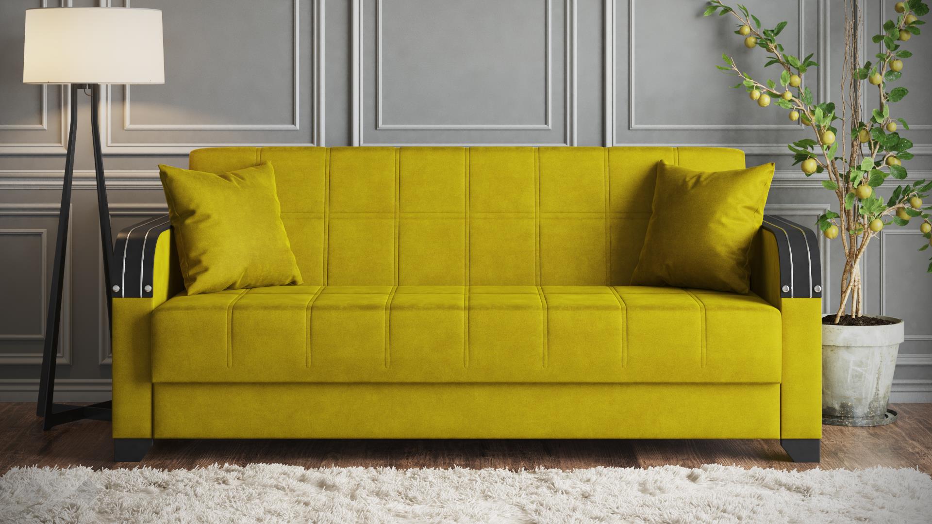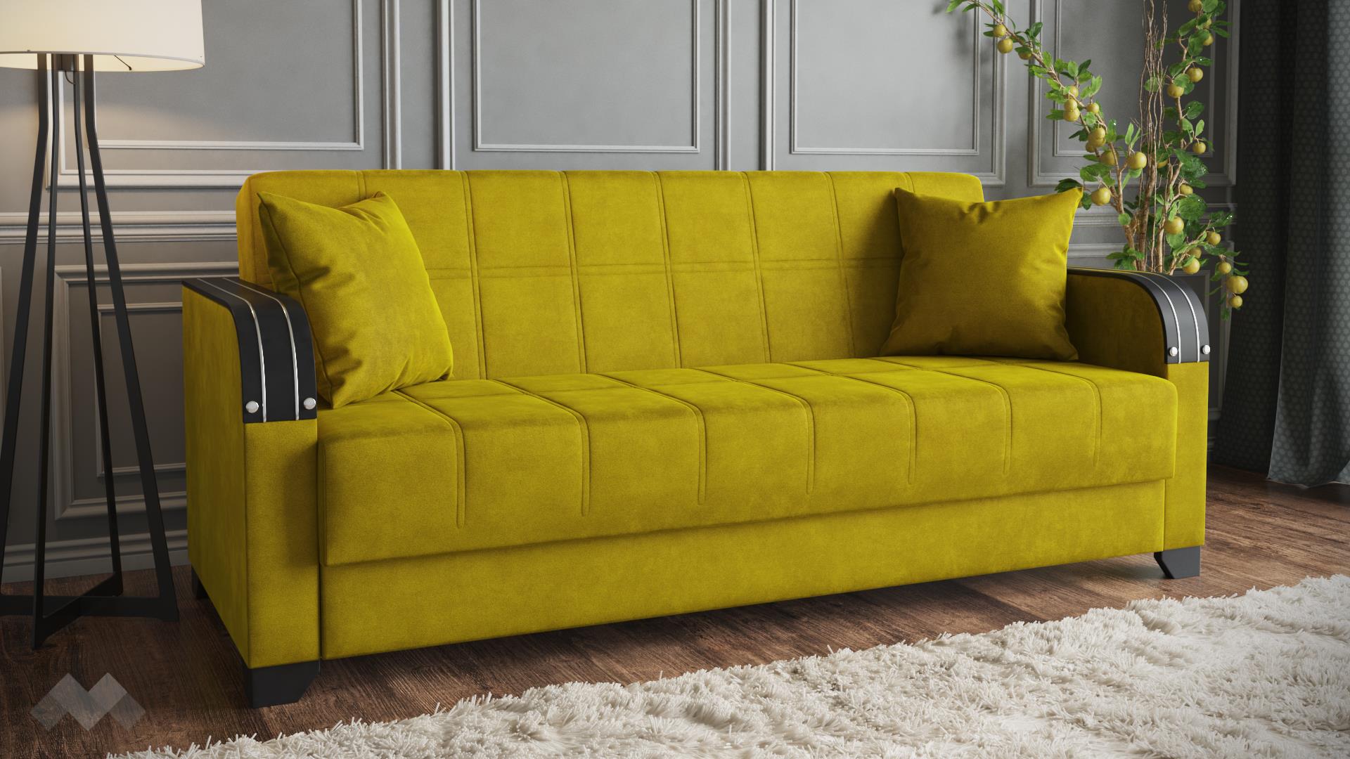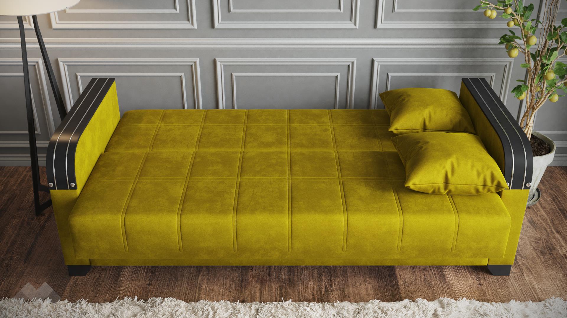 Изискан и създаден да впечатлява, моделът е идеалното решение за любителите на практичността и комфорта. Внимателно подбраните цветови комбинации, здравата и лесна за поддръжка дамаска и раклата под седалката са само част от плюсовете, с които диванът разполага. Като впечатляващ акцент във визията му са предвидени подлакътници с МДФ плоскости, които придават допълнителна здравина и устойчивост на износване на модела, а също така могат да бъдат удобна поставка за чаша чай или любимата книга.