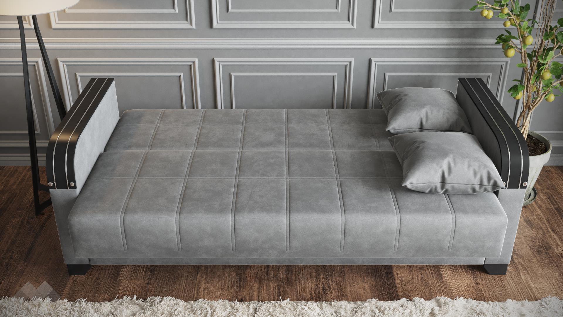 Изискан и създаден да впечатлява, моделът е идеалното решение за любителите на практичността и комфорта. Внимателно подбраните цветови комбинации, здравата и лесна за поддръжка дамаска и раклата под седалката са само част от плюсовете, с които диванът разполага. Като впечатляващ акцент във визията му са предвидени подлакътници с МДФ плоскости, които придават допълнителна здравина и устойчивост на износване на модела, а също така могат да бъдат удобна поставка за чаша чай или любимата книга.
