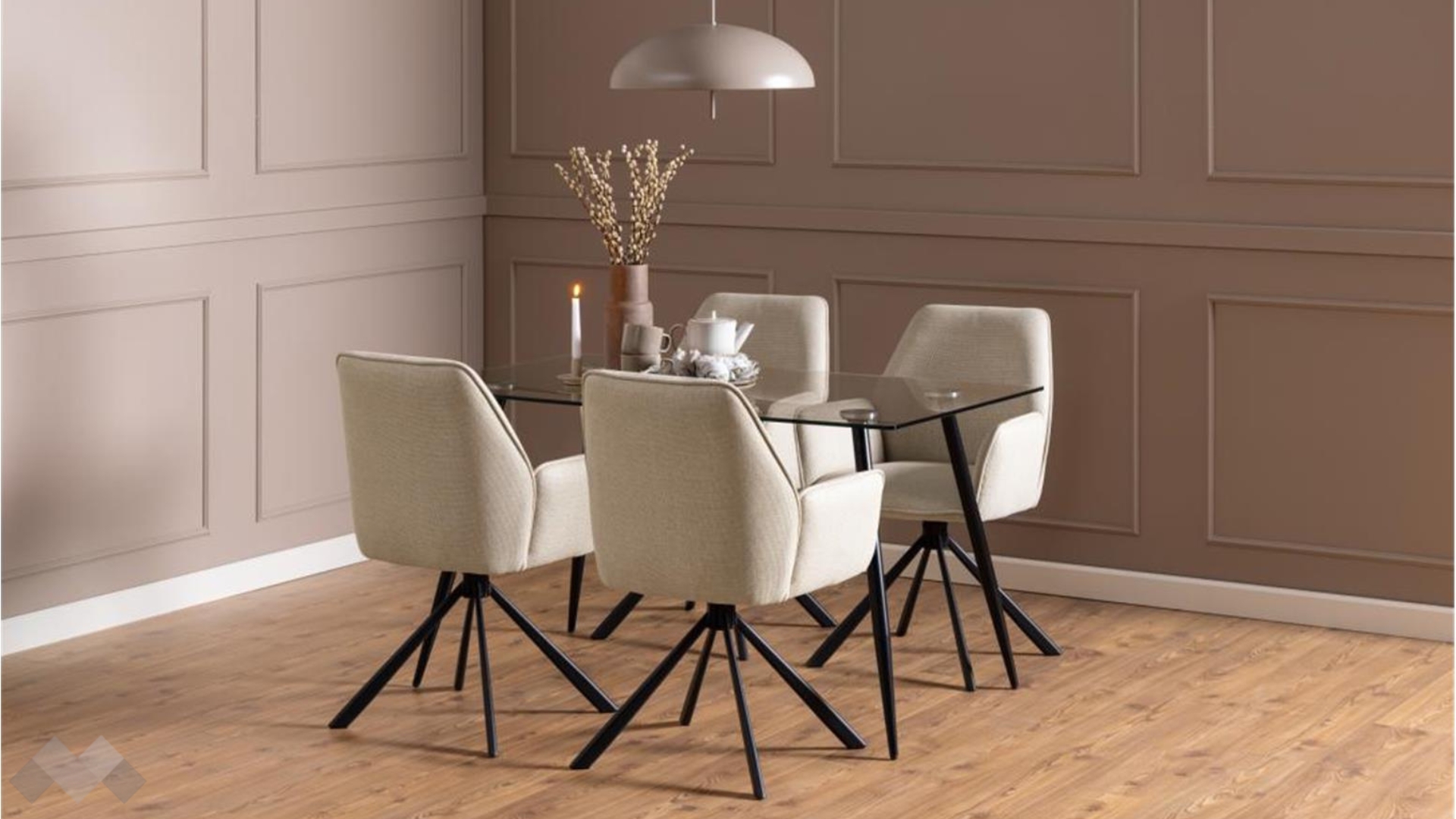 Стоманената основа с 4-звезден дизайн гарантира стабилност и издръжливост, а въртящата се функция осигурява допълнително удобство в ежедневието. Със своя стилен вид, трапезен стол Гленда е идеалният избор за модерни трапезарии.