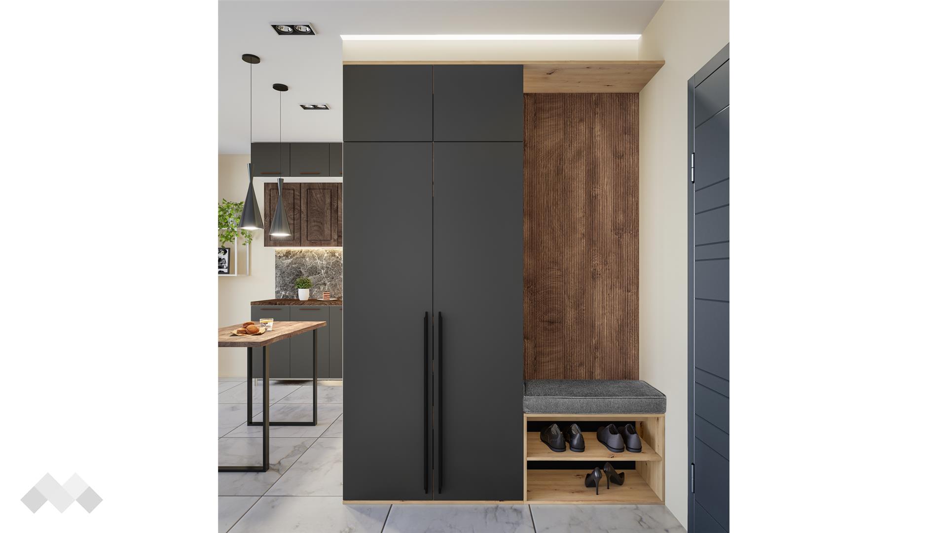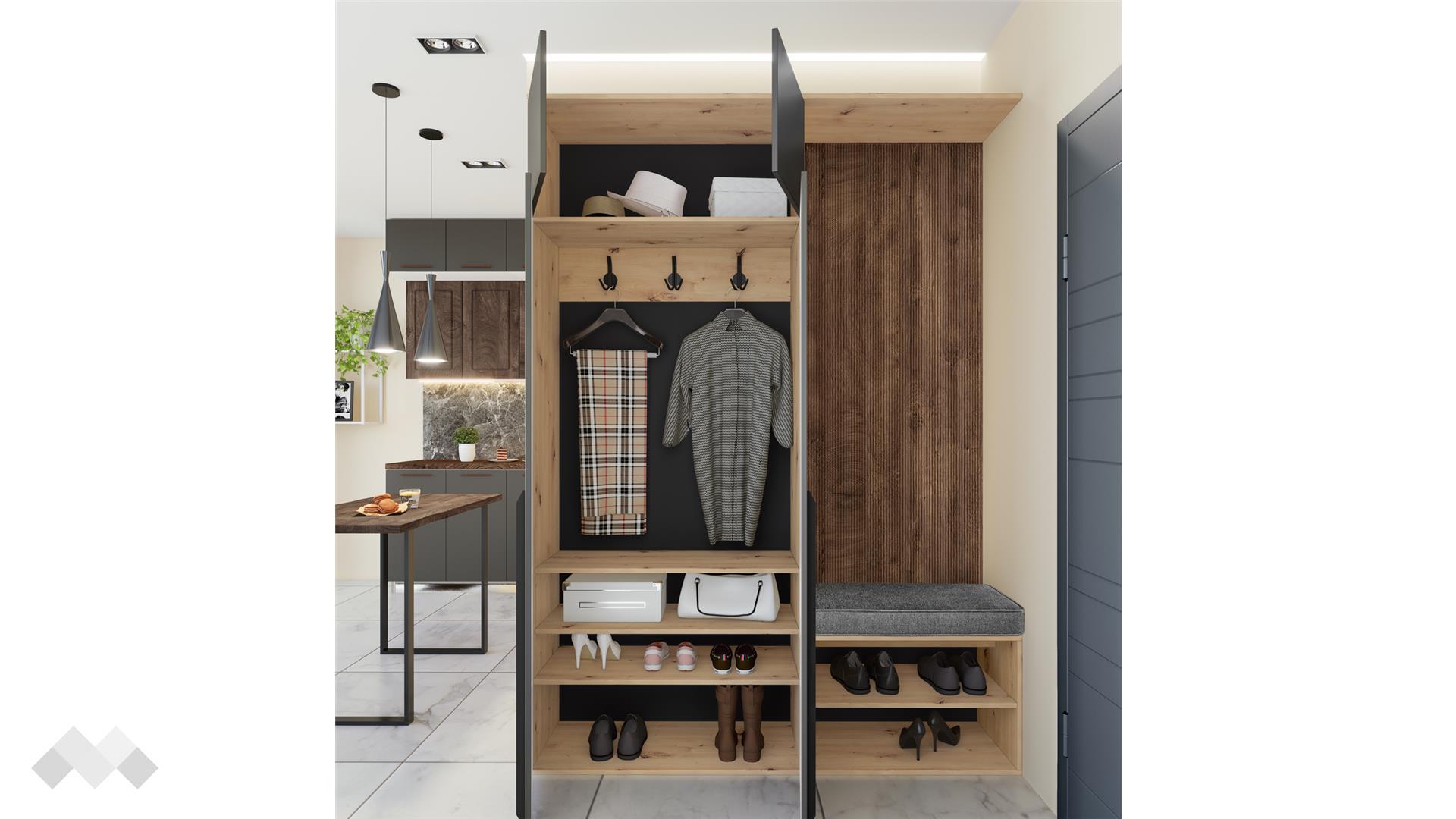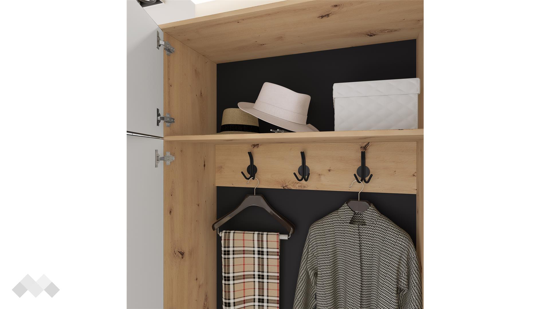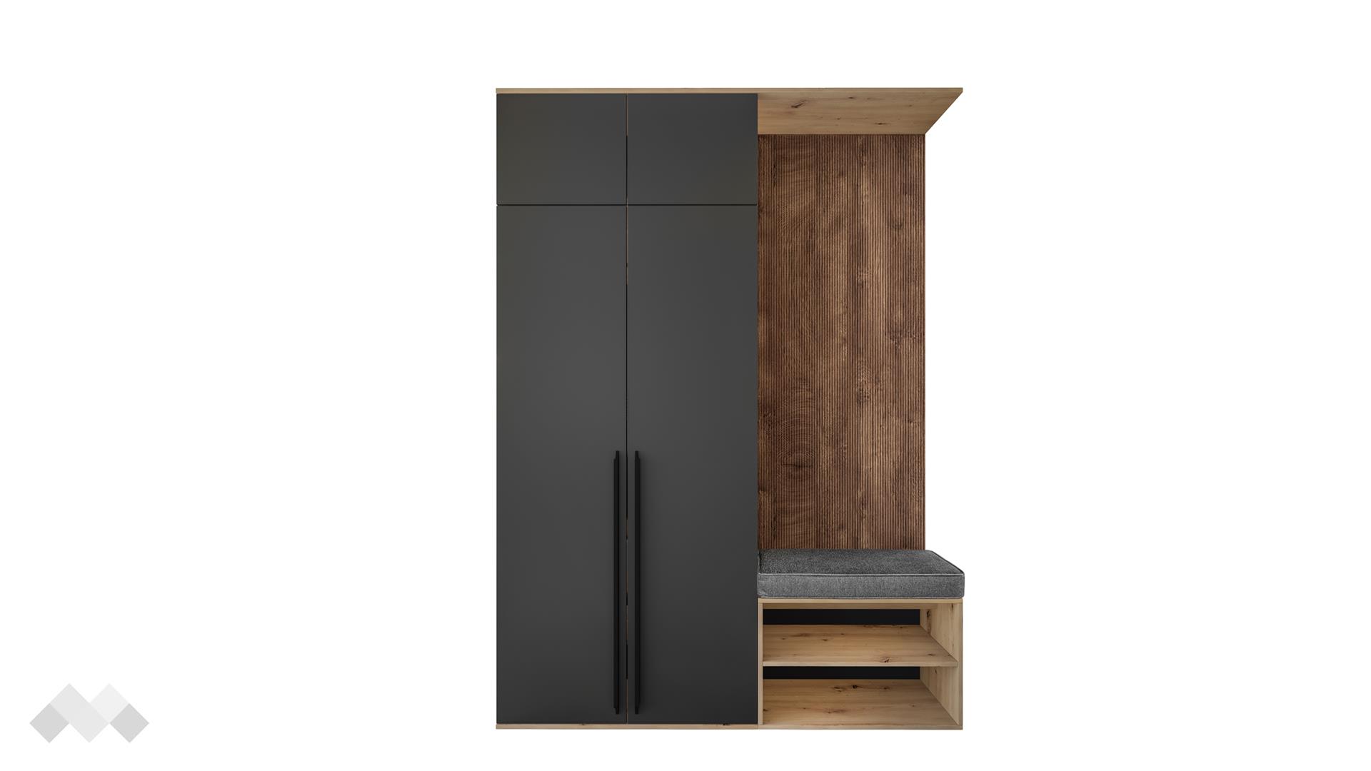 Съчетанието на дъб артисан с дъб натурал и карбон мат придава изящен външен вид на портманто Хера и го прави подходящ за всякакви интериори.