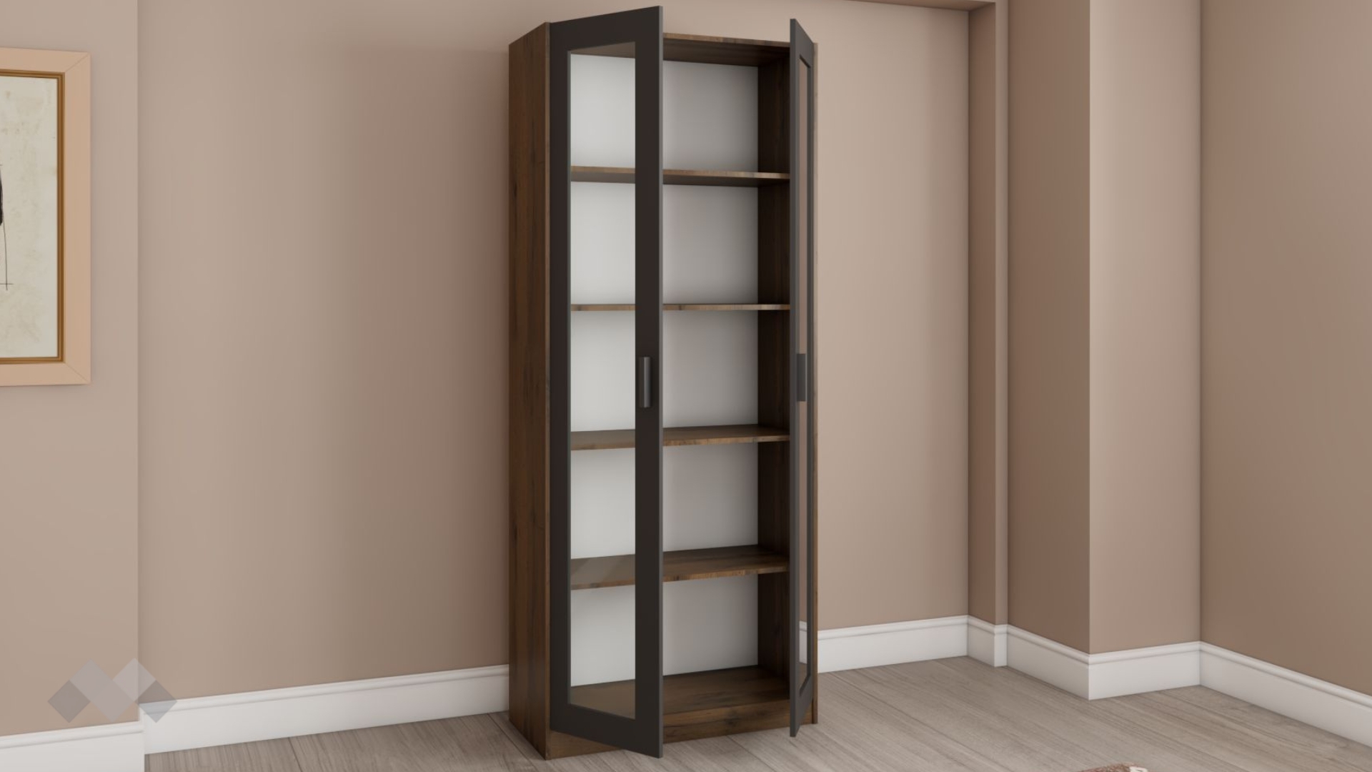 Висок шкаф витрина с две врати Хироу е изработен от висококачествено 16 мм ПДЧ, гаранция за здравина, стабилност и дълъг период на експлоатация.