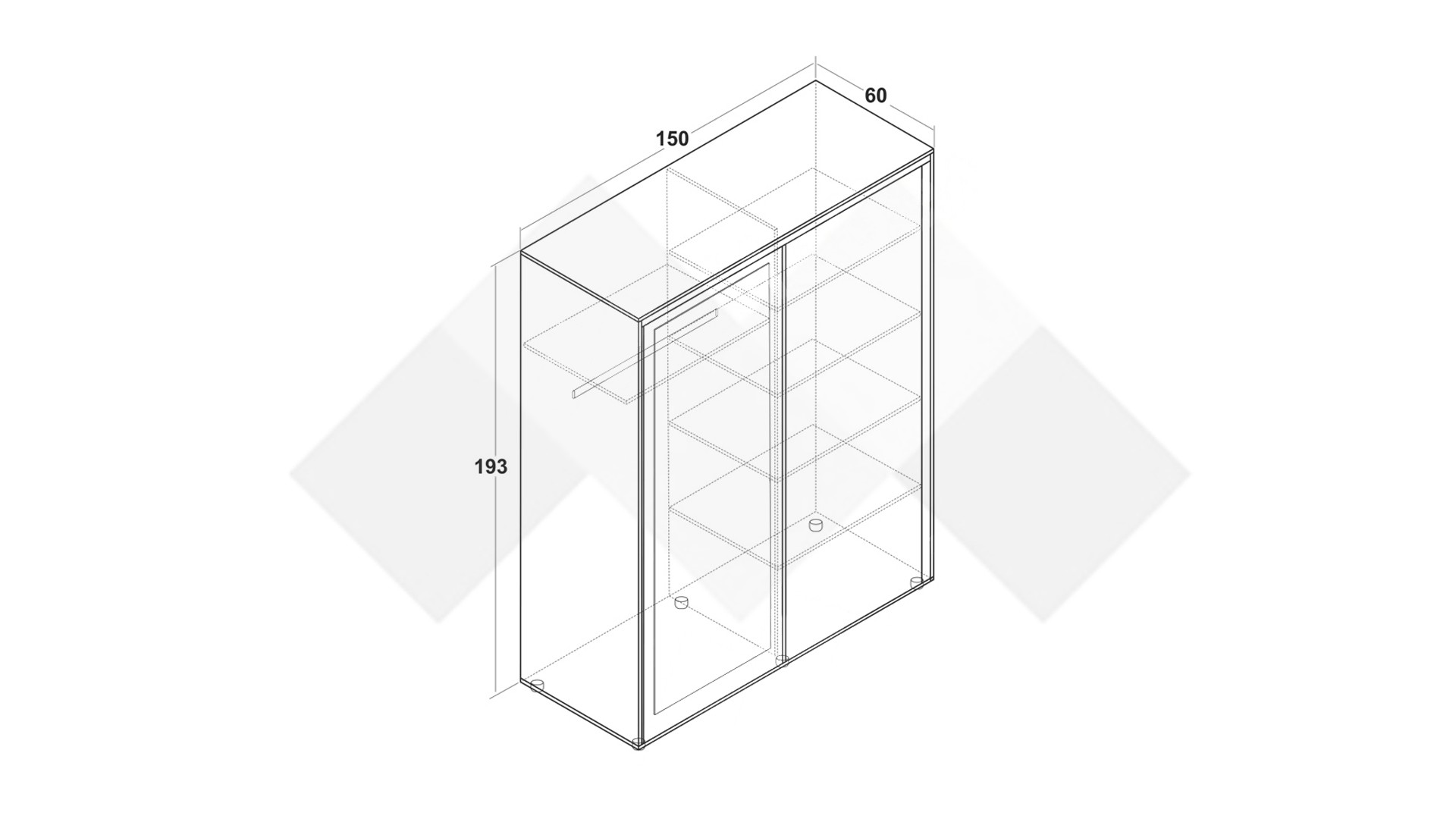 Той е двукрилен гардероб, който се отваря чрез плъзгащи врати. Модерният плъзгащ механизъм прави отварянето на вратите лесно, без да се тревожиш, че трябва да осигуряваш допълнително пространство пред самия гардероб. Щом ги отвориш, вътре ще откриеш четири големи рафта с оптимална височина, просторен лост за закачалки и рафт над него.