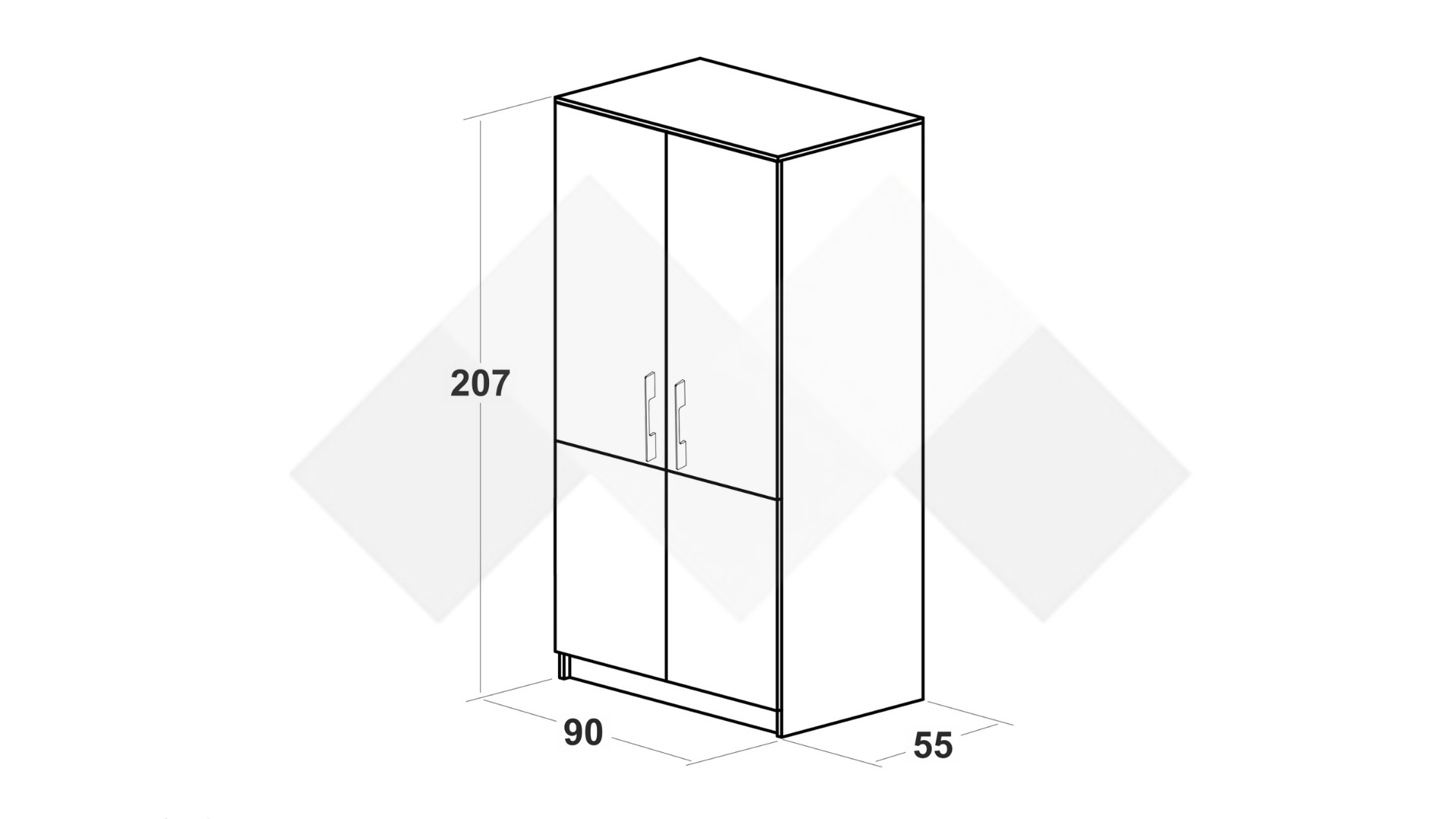 Д: 90 см Ш: 55 см В: 207 см
