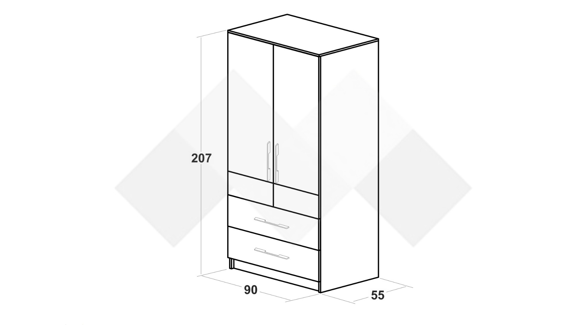 Д: 90 см Ш: 55 см В: 207 см