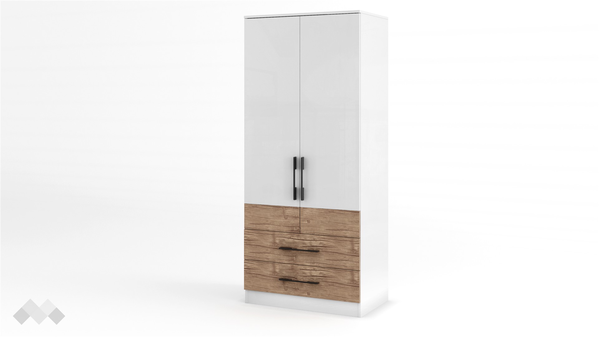 Гардероб Калифорния МК3 има практично разпределение, което ще ти позволи да подредиш добре всички дрехи и аксесоари. Той е двукрилен с рафт, две чекмеджета и лост за закачалки. Можеш да използваш рафтовете за съхранение на сгънати дрехи, в чекмеджетата да организираш бельо и аксесоари, а на закачалката да окачиш по-често използвани или фини облекла.