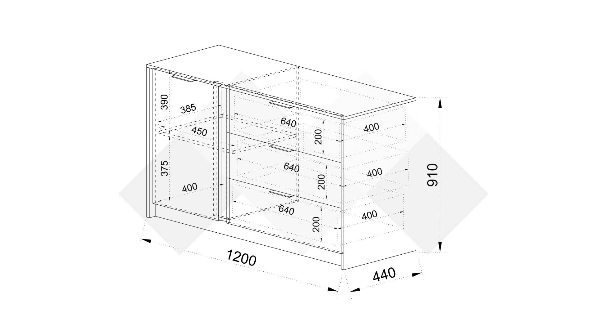 ✓ 3 чекмеджета ✓ 1 шкаф ✓ 1 рафт ✓ качествена изработка ✓ 16 мм ПДЧ