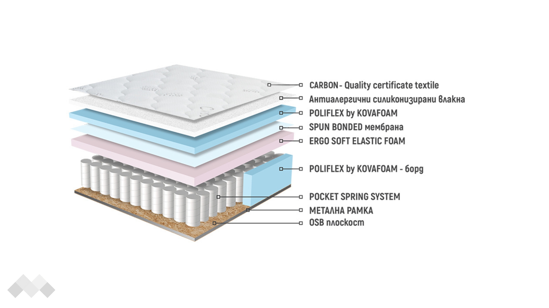 Комфортният сън вече е възможен, благодарение на матраци НАНИ и техния бестселър - еднолицев матрак Kaspia Relax Pocket, който предлага индивидуален комфорт за всеки партньор с вградената покет система в ядрото. Малкият диаметър на спираловидните пружинки, пакетирани в текстилни джобчета, напасват всяка част на тялото идеално по площта на матрака. Те са изключително удобни и безшумни, но същевременно ортопедични. Покет системата е предпочитана както за деца, така и за възрастни, защото е най-дишащата система за сън, която позволява свободен приток на свеж въздух в цялото ядро. Над пружинния пакет е разположен слой ERGO SOFT ELASTIC пяна, която увеличава комфорта по време на сън. За допълнителна устойчивост, пружините са защитени с борд от POLYFLEX by KOVAFOAM пяна.