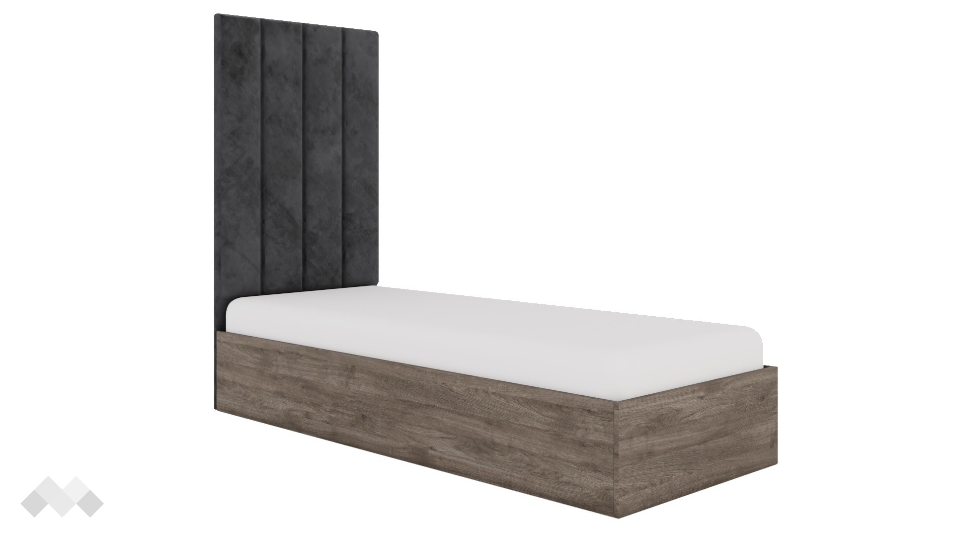Леглото е за матрак с размер 82/190 см. Високата, тапицирана табла на модела го превръща в перфектния избор за любителите на отдиха, защото ти позволява да се облегнеш комфортно и да се отдадеш на заслужена почивка по възможно най-удобния начин за теб. Таблата е с приятна и мека на допир сива дамаска. Любима книга или вечерното предаване - изборът е твой, единственото сигурно нещо е, че ще се чувстваш по-приятно от всякога.