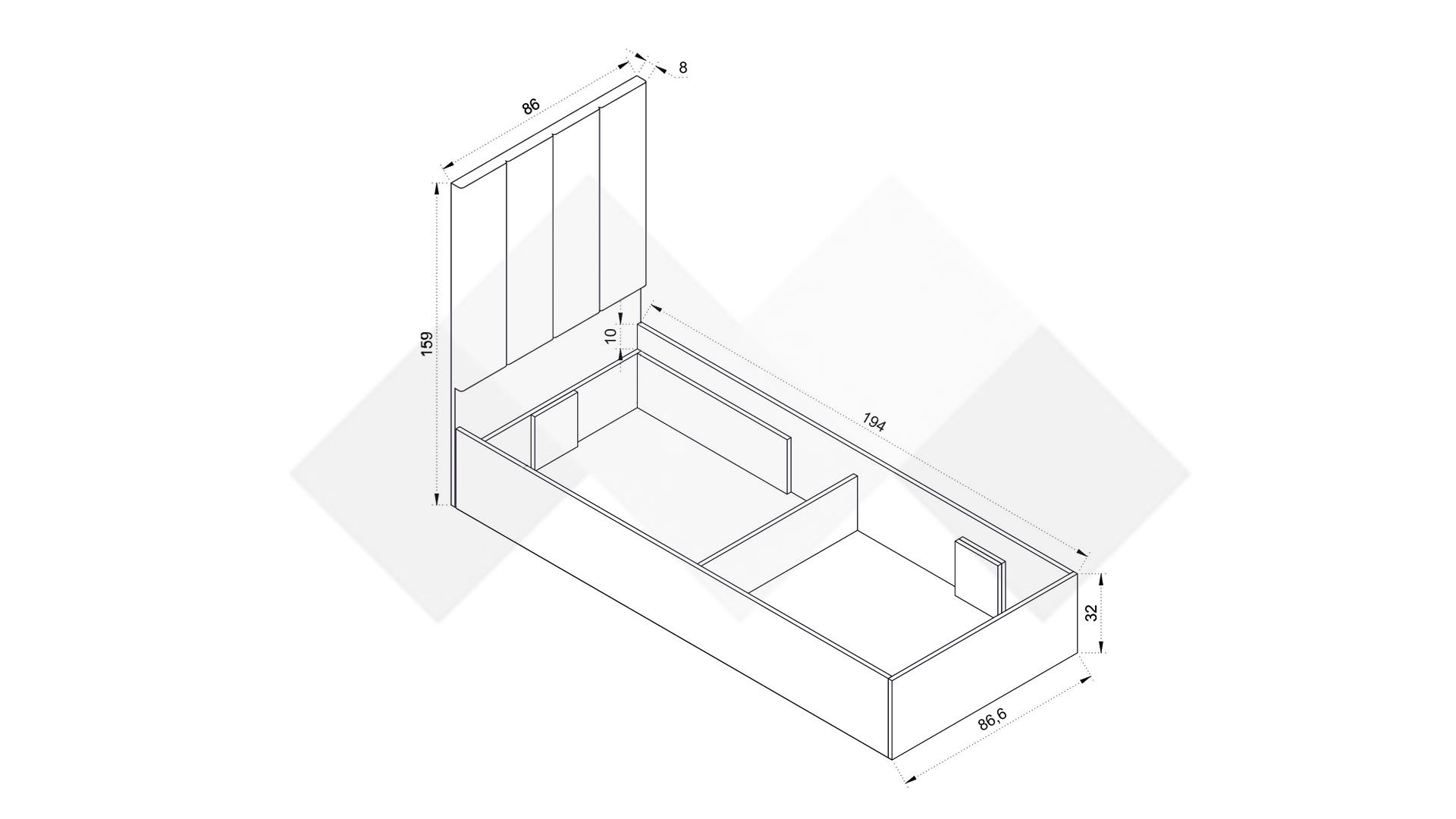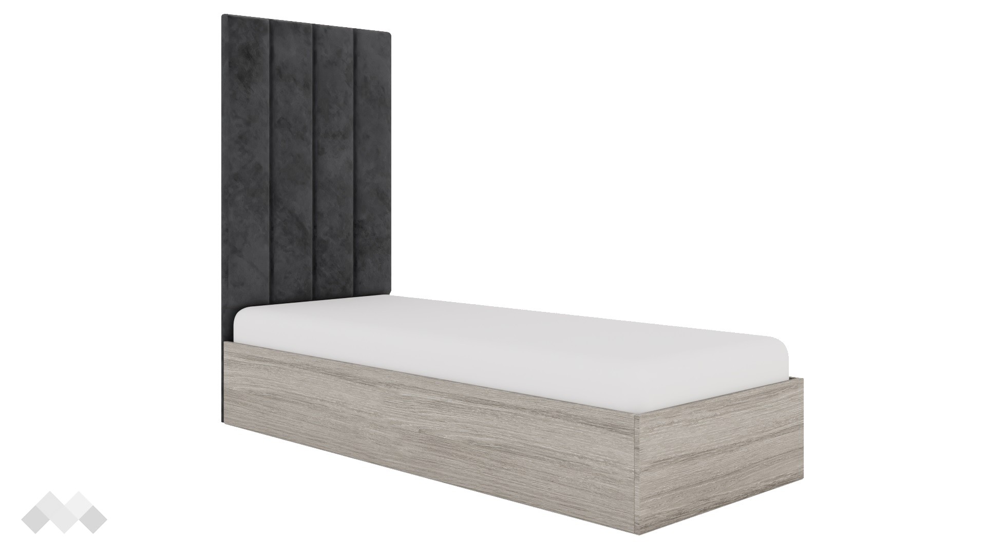 Леглото е за матрак с размер 82/190 см. Високата, тапицирана табла на модела го превръща в перфектния избор за любителите на отдиха, защото ти позволява да се облегнеш комфортно и да се отдадеш на заслужена почивка по възможно най-удобния начин за теб. Таблата е с приятна и мека на допир сива дамаска. Любима книга или вечерното предаване - изборът е твой, единственото сигурно нещо е, че ще се чувстваш по-приятно от всякога.