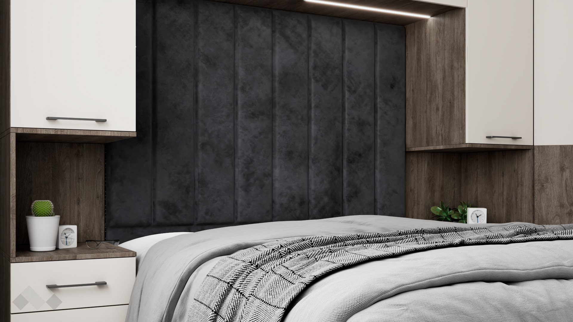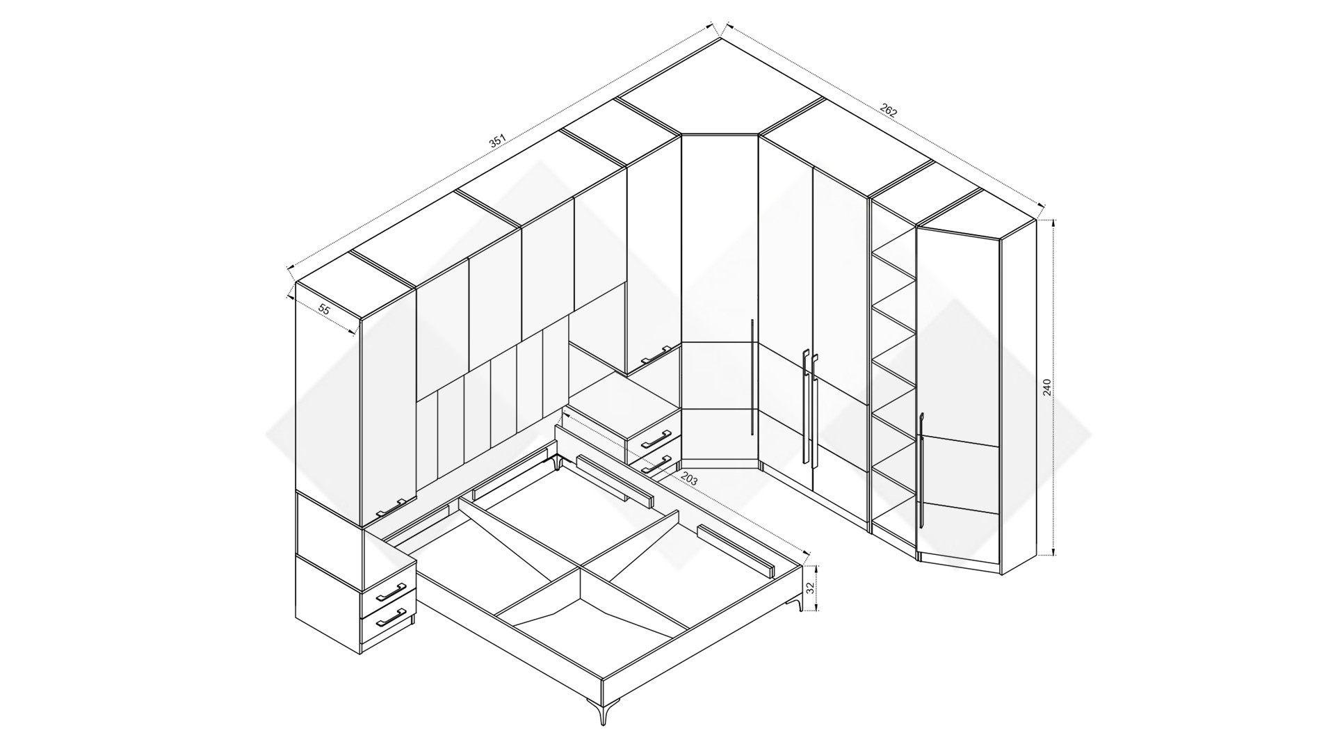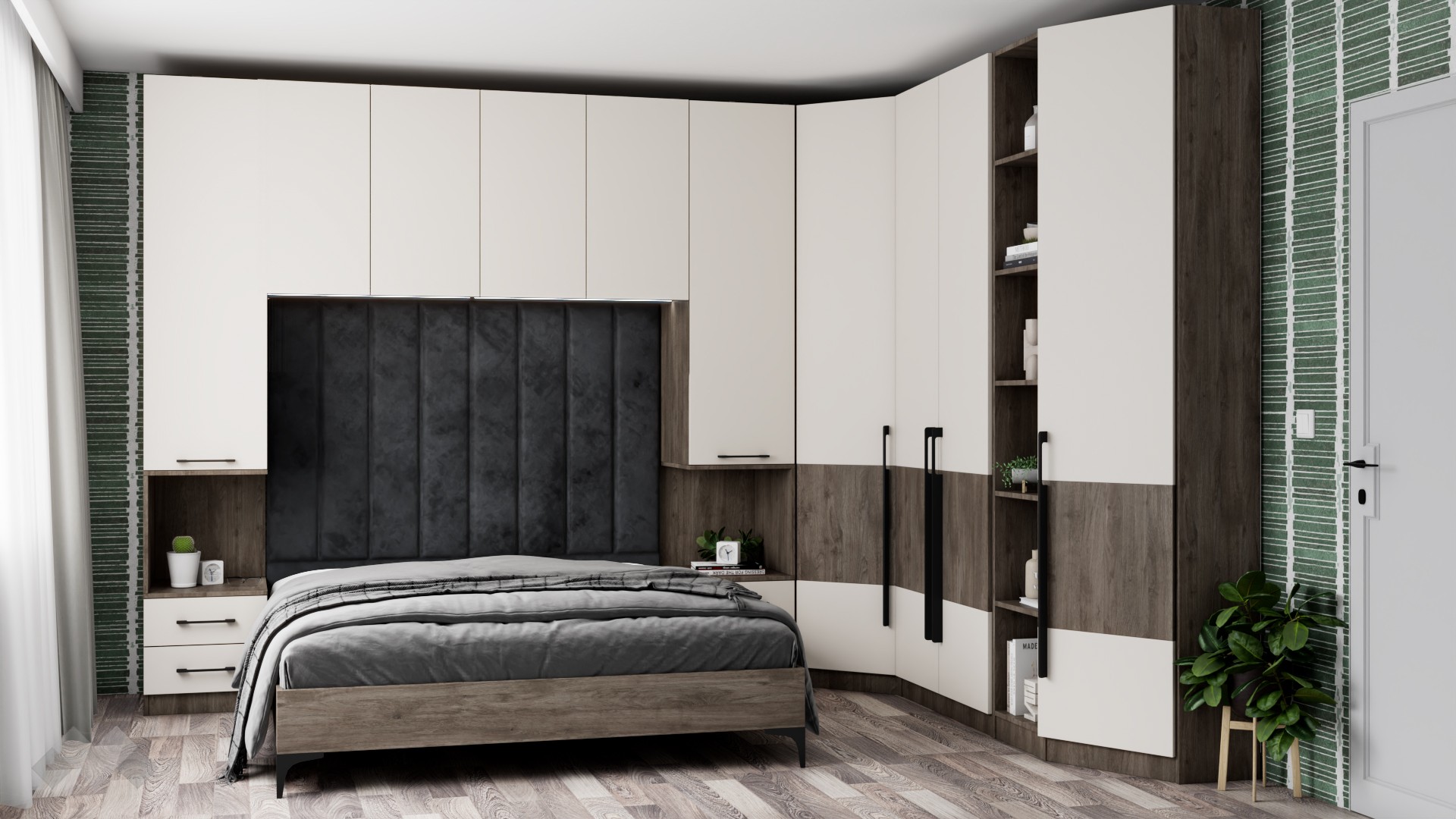 ⭐ Предимства: ✓ 18 мм ПДЧ ✓ спалня за матрак 160/200 ✓ тапицирана табла ✓ гардеробна система ✓ механизъм за плавно затваряне ✓ надстройка с LED осветление ✓ модерен и функционален дизайн