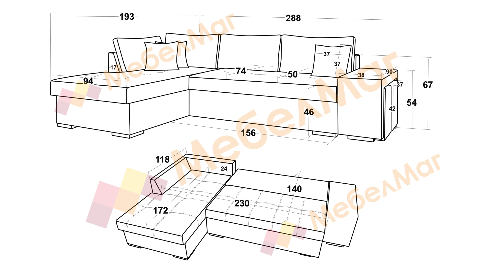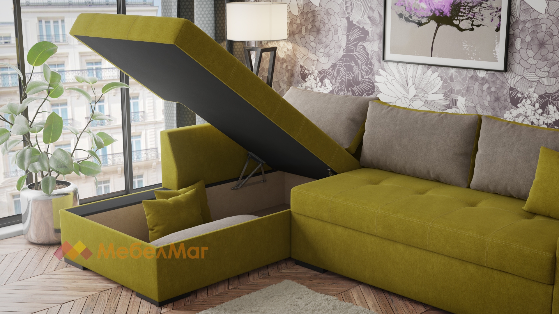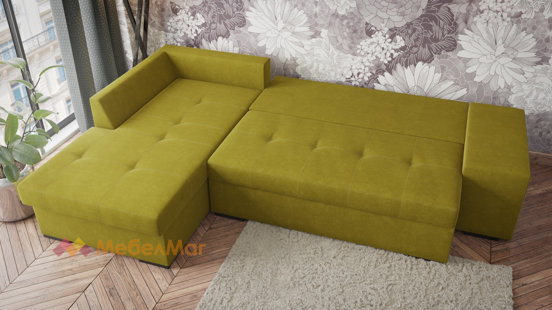 Бързо и лесно диванът се превръща в легло с размери 140/230 см посредством изтегляща се седалка и падащ гръб. Под лежанката и под седалката има просторни ракли за багаж - идеално място да прибереш завивки, възглавници и всичко друго, за което все не намираш място.
