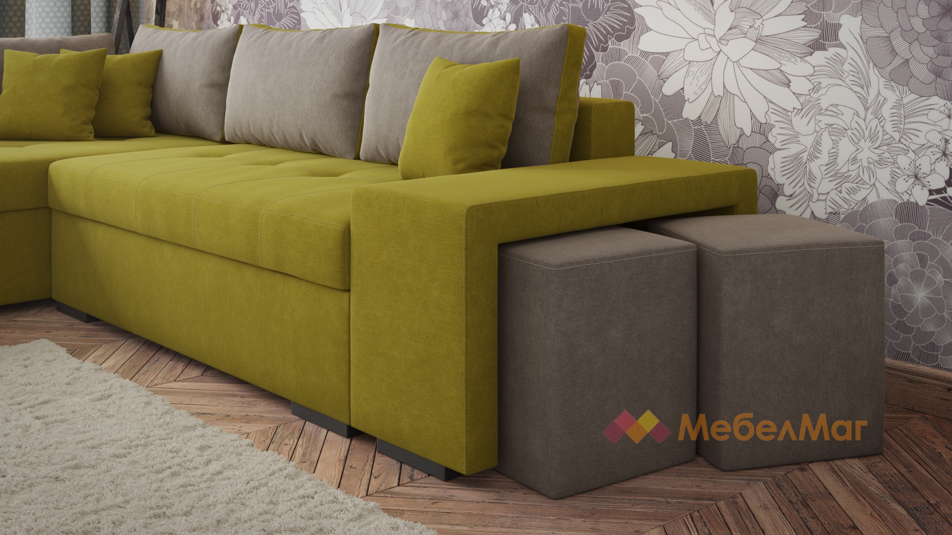 Дивана е много удобен и красив. Раклата е голяма, а табуретките към него са огромно предимство.
