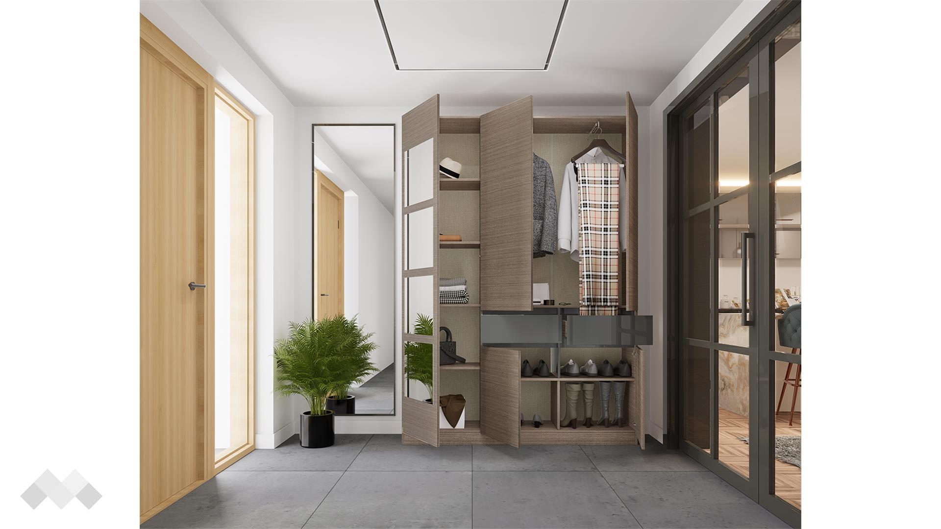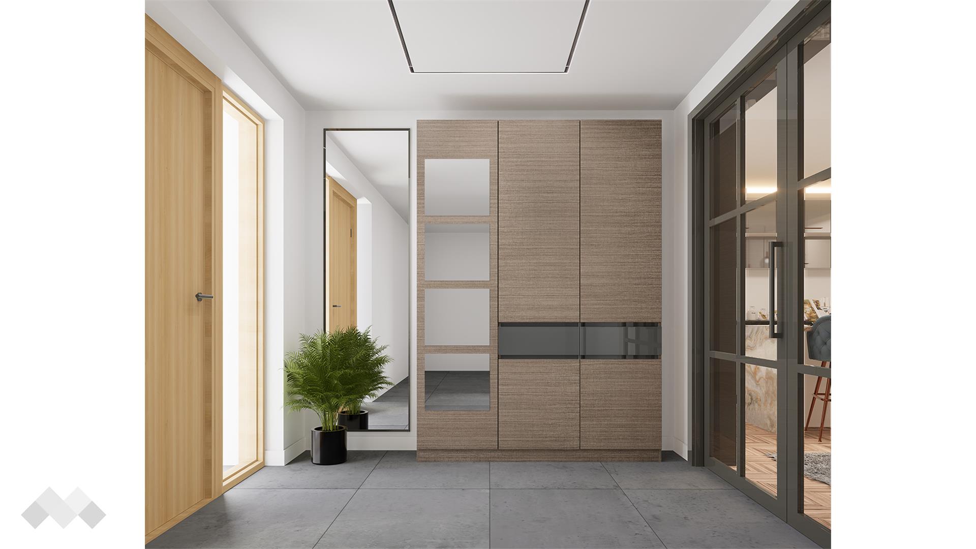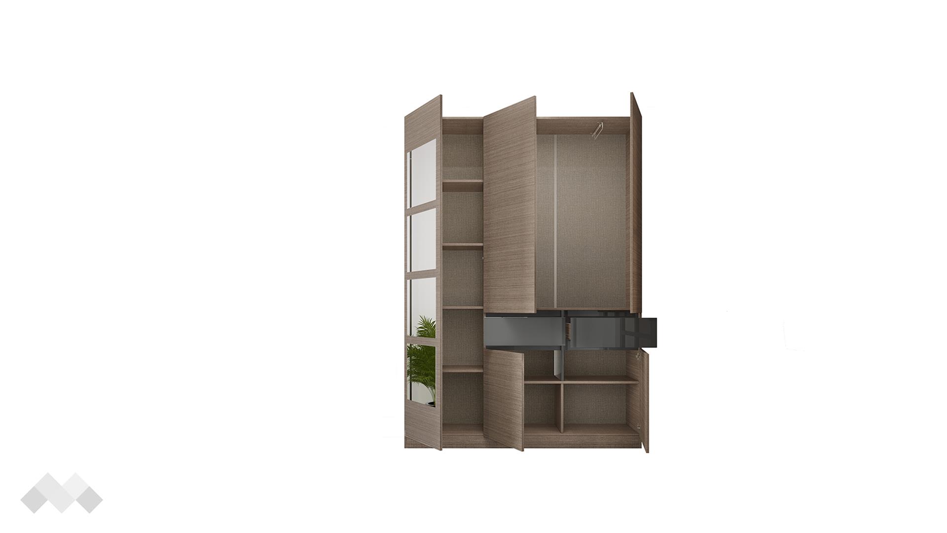 Моделът разполага с висок шкаф с огледала на вратата за да си сигурен, че изглеждаш перфектно имаш и огледало, на което можеш да хвърлиш последен поглед на външния си вид преди да излезеш. На петте рафта скрити зад нея имаш достатъчно място за съхранение на своите вещи.