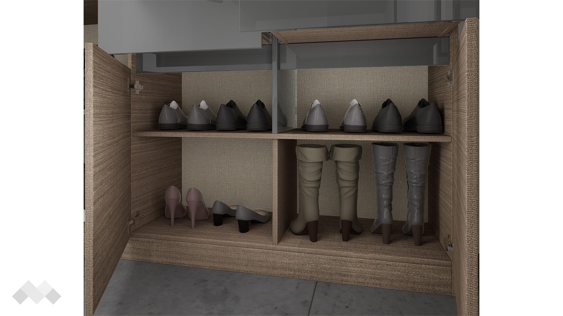 Шкафа за обувки е достатъчно голям, за да можеш да подредиш от 12 до 18 чифта обувки.