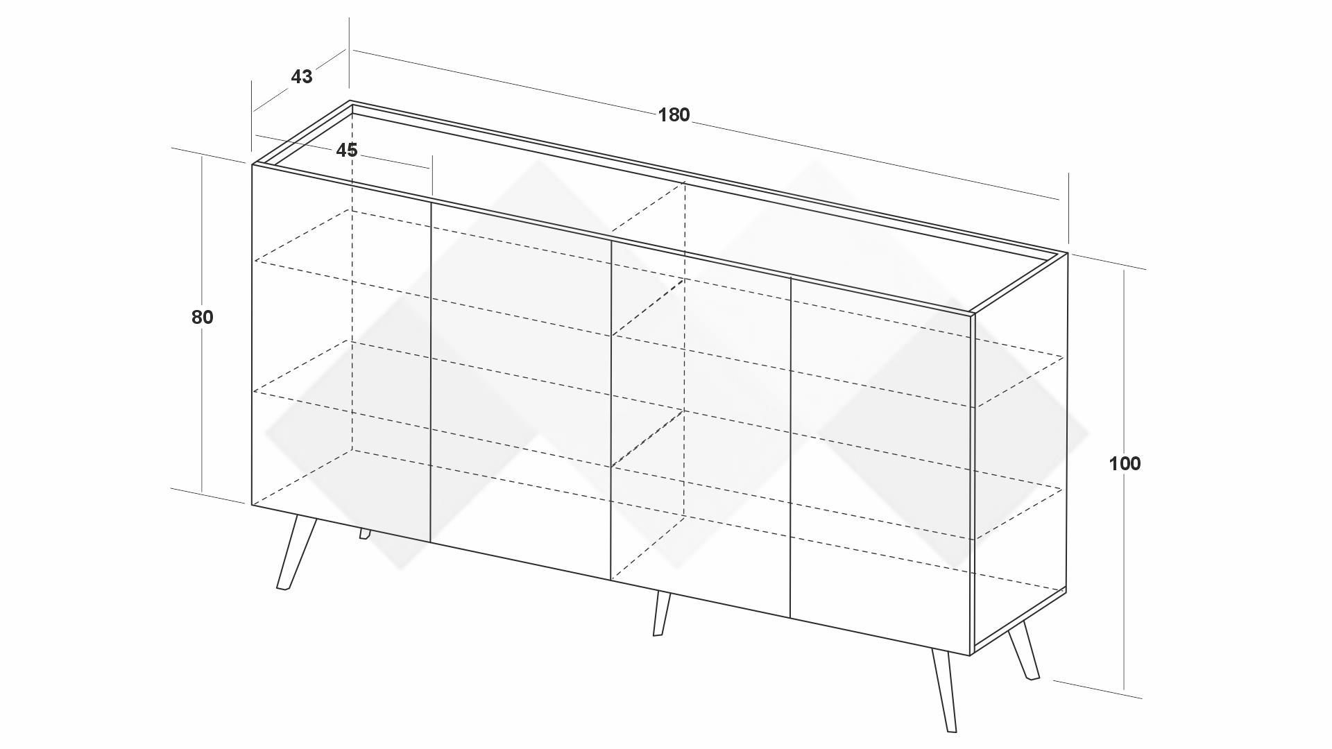 Скринът разполага с два затворени шкафа с по два вътрешни рафта всеки, предоставяйки достатъчно място за съхранение на домакински съдове, чаши и аксесоари, кутии за съхранение, лични вещи, козметика или други необходими за теб неща. Благодарение на вътрешните рафтове можеш лесно да разделиш вещите си и да поддържаш реда, като всяко нещо има своето място.