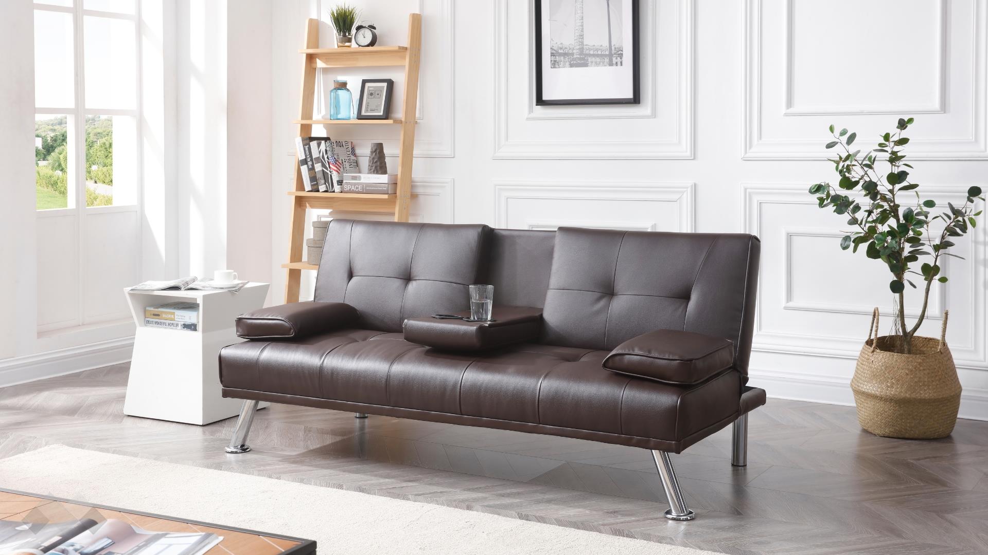 Едно от най-отличителните предимства на модела е падащата поставка за чаши, скрита в централната облегалка – удобна за напитки, дистанционни или малки аксесоари. С едно движение канапето се превръща в удобно легло чрез клик-клак механизъм, а площта за сън 168/98 см е подходяща както за отдих през деня, така и за нощувки.