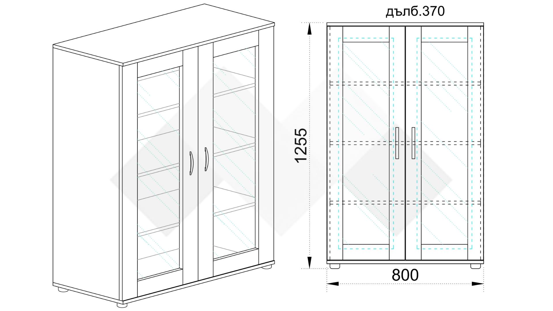 Витринен шкаф Лизи е готов да приюти красиви сервизи, скъпи украси и декорации. Благодарение на него те ще са на сигурно място и в същото време няма да убегнат от погледите на гостите. Шкафът е подходящ както за трапезария, така и за всекидневна. Вратичките са снабдени с механизъм за плавно затваряне, поставени за твое удобство.
