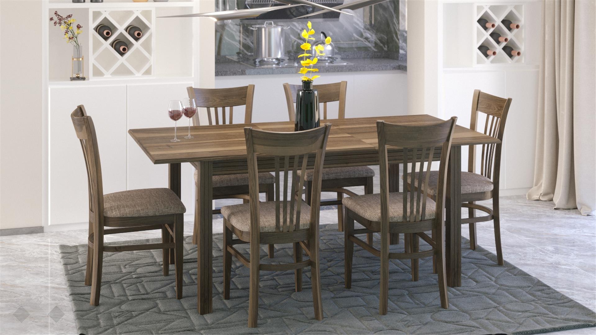 Столът е със здрава конструкция от естествена букова дървесина за устойчивост и стабилност, а лаковото покритие добавя елегантност. Седалката е проектирана с твърда основа, тапицирана с дунапрен за повече комфорт при седене и завършена със здрава текстилна дамаска, лесна за поддръжка.