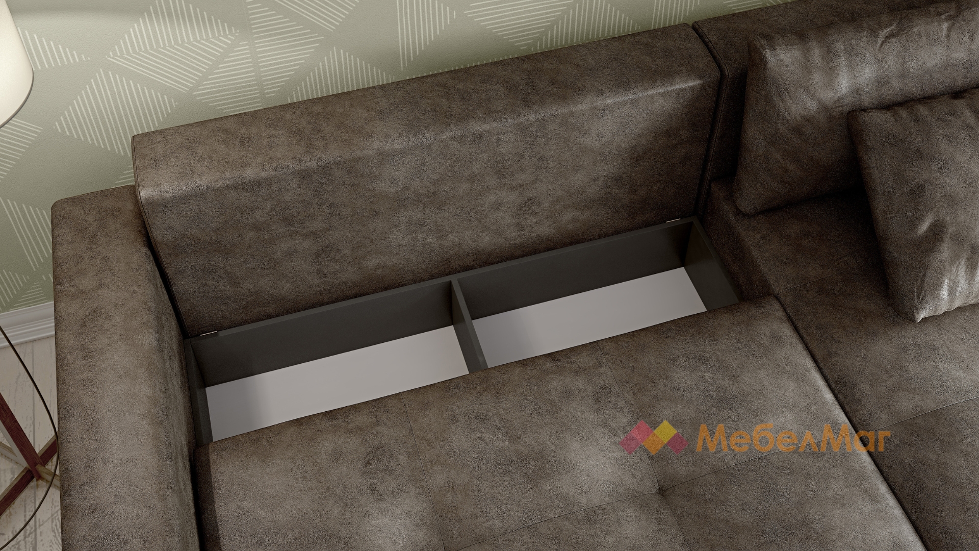 Ъглов диван Лутън притежава всички удобства, които се очакват от диван, и е перфектна комбинация за отдих, съхранение и сън в едно компактно и стилно решение за твоя дом. Получаваш и три големи възглавници, които ще ти осигурят оптимална опора при седене.