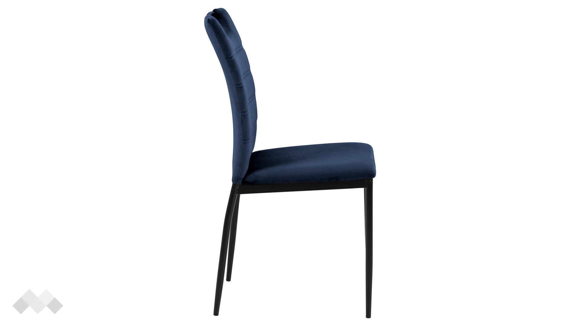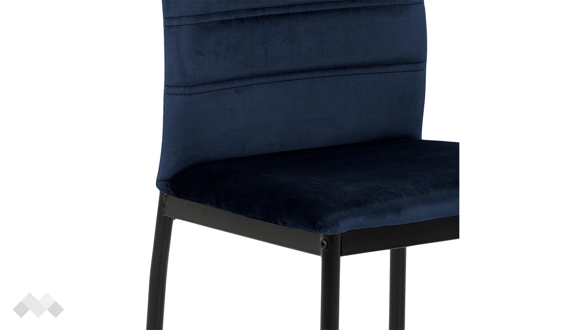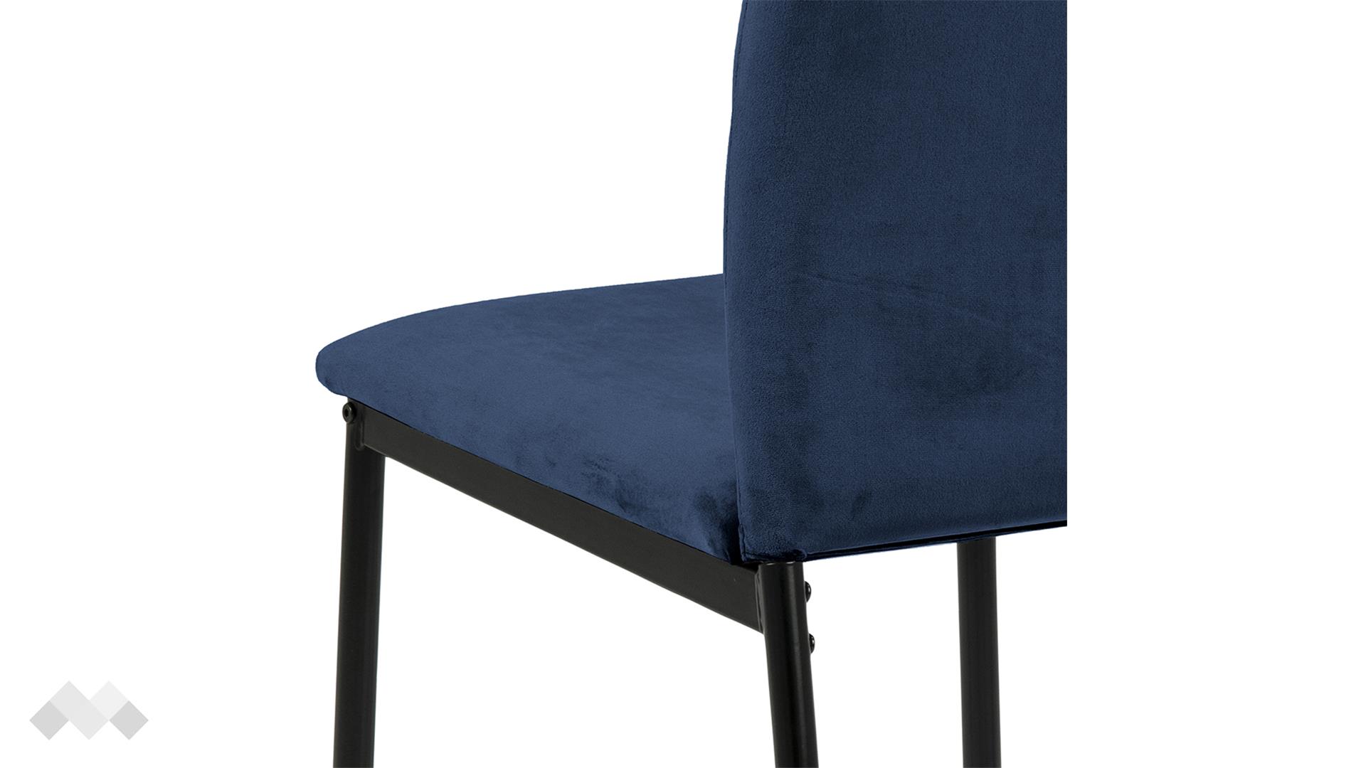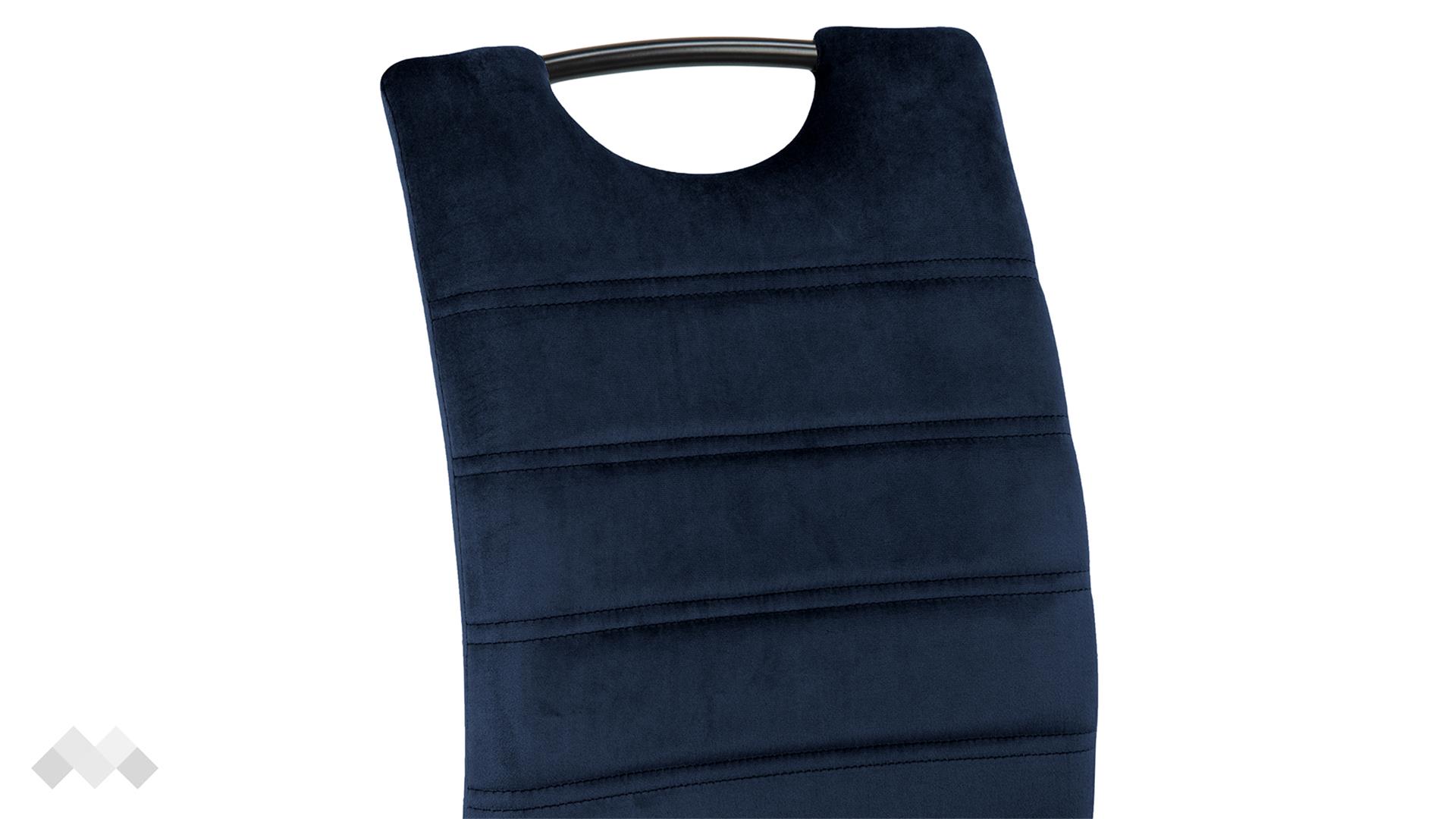 Изчистеният силует, синият цвят и детайлите издигат този стол на следващо ниво. Дръжката и хоризонталните шевове на облегалката придават съвременен характер на модела. Меката, подплатена седалка с висока облегалка прави стола удобен за седене около масата по време на вечерите със семейството и приятелите ти. Седни и се наслади на още една порция вкусна храна, чувствайки се комфортно в уюта на твоя дом. Тапициран с кадифена материя, той създава усещане за лукс и гарантира удобство.