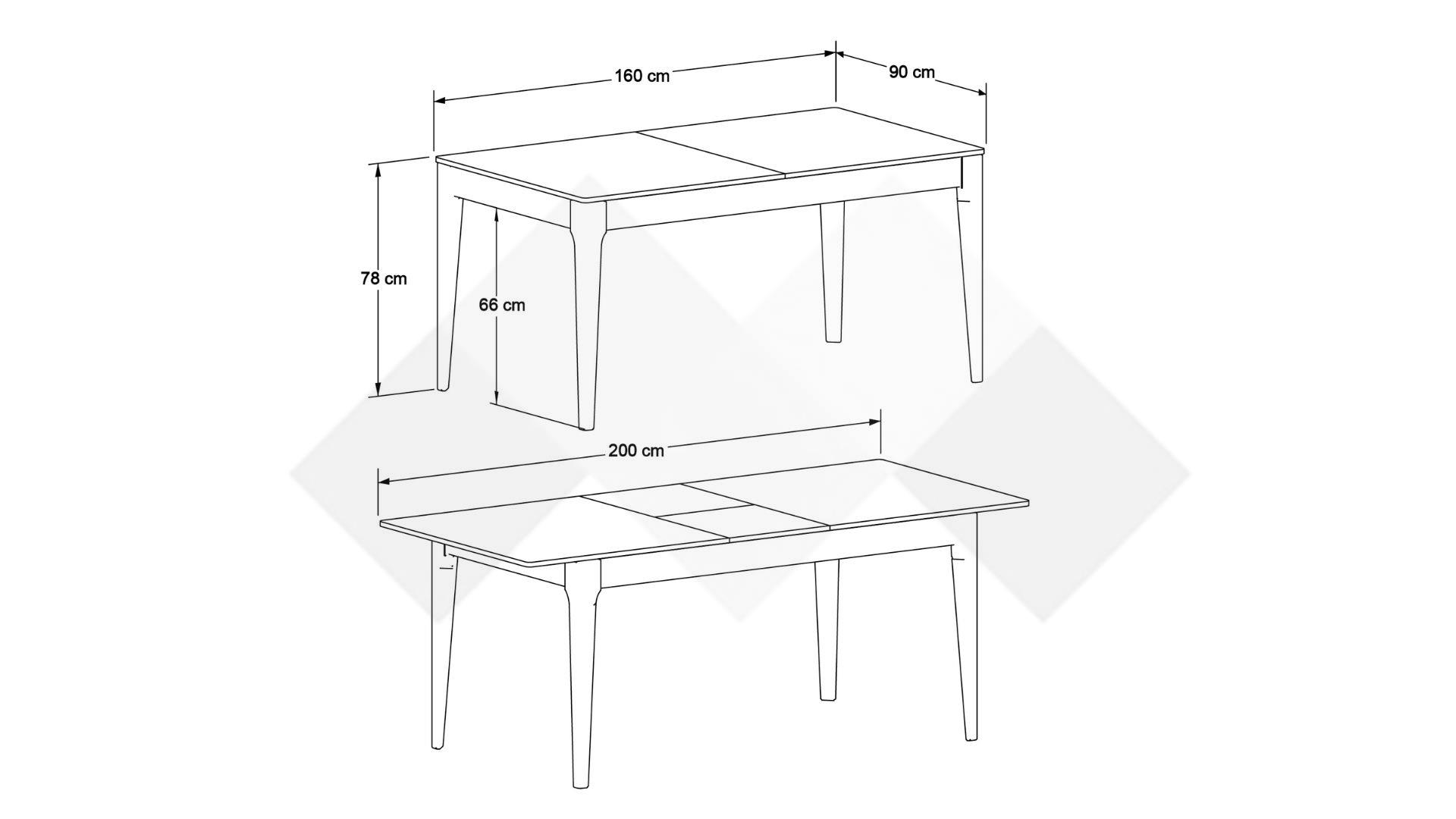 Благодарение на разтегателния механизъм, масата бързо и лесно увеличава своята площ до 200 см, осигурявайки допълнително място за семейни събирания, гости или празнични вечери.