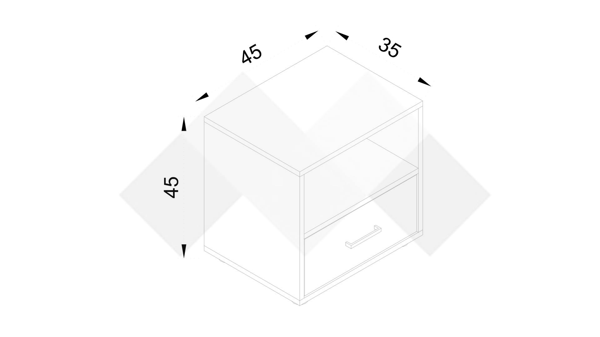 Нощно шкафче Мито е малко, но практично, с оптимална височина. Благодарение на чекмеджето и отворения рафт, разполагаш с достатъчно място за организация на всякакви вещи и дреболии, които винаги да ти бъдат под ръка.