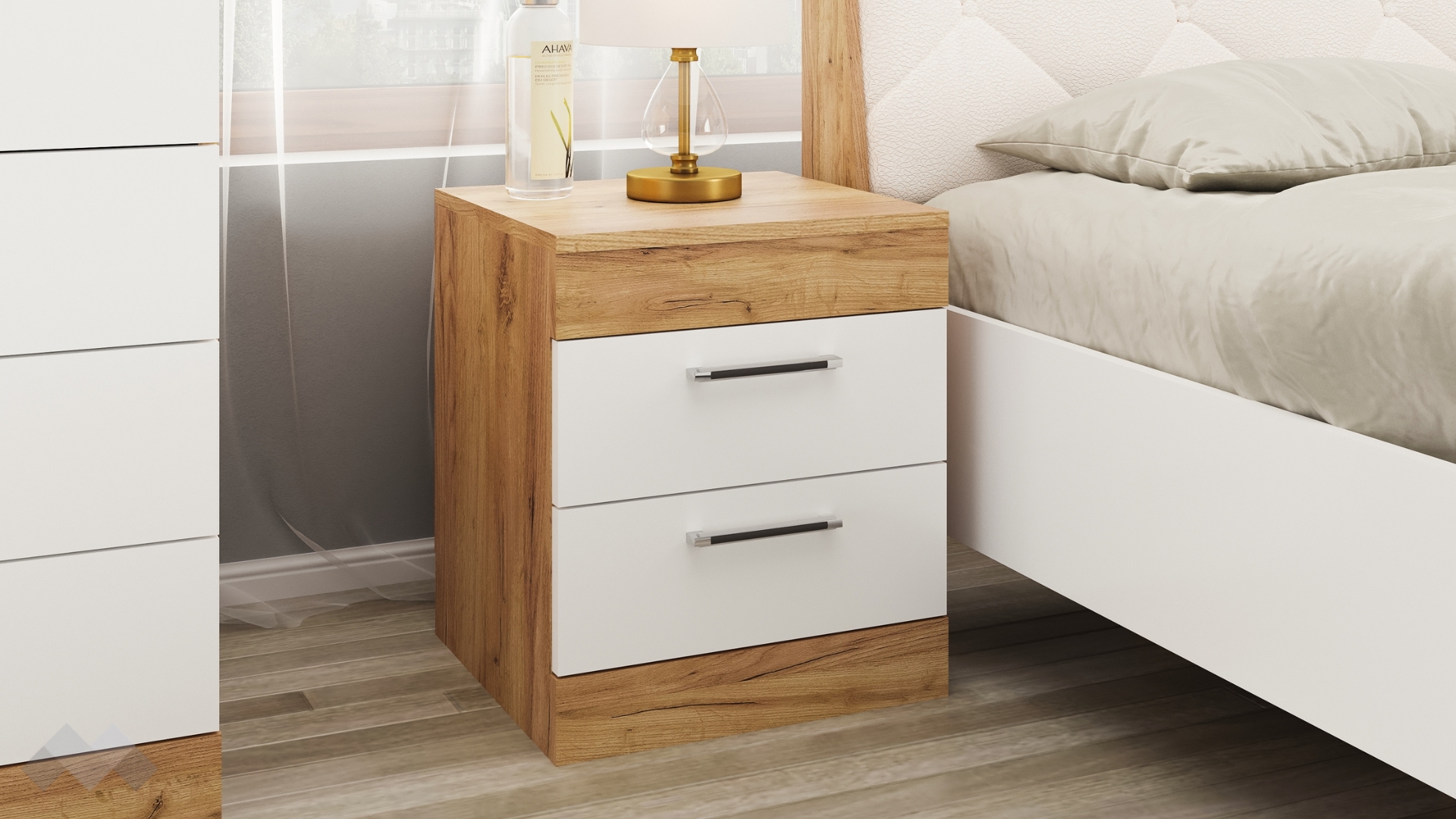 Конструкцията на нощен шкаф Моник е изпълнена от ПДЧ с дебелина 16 мм, здраво и лесно за поддръжка. Прецизната изработка и висококачественият обков гарантират дълготрайна употреба, а за теб остава да се насладиш на своя красив и подреден дом.