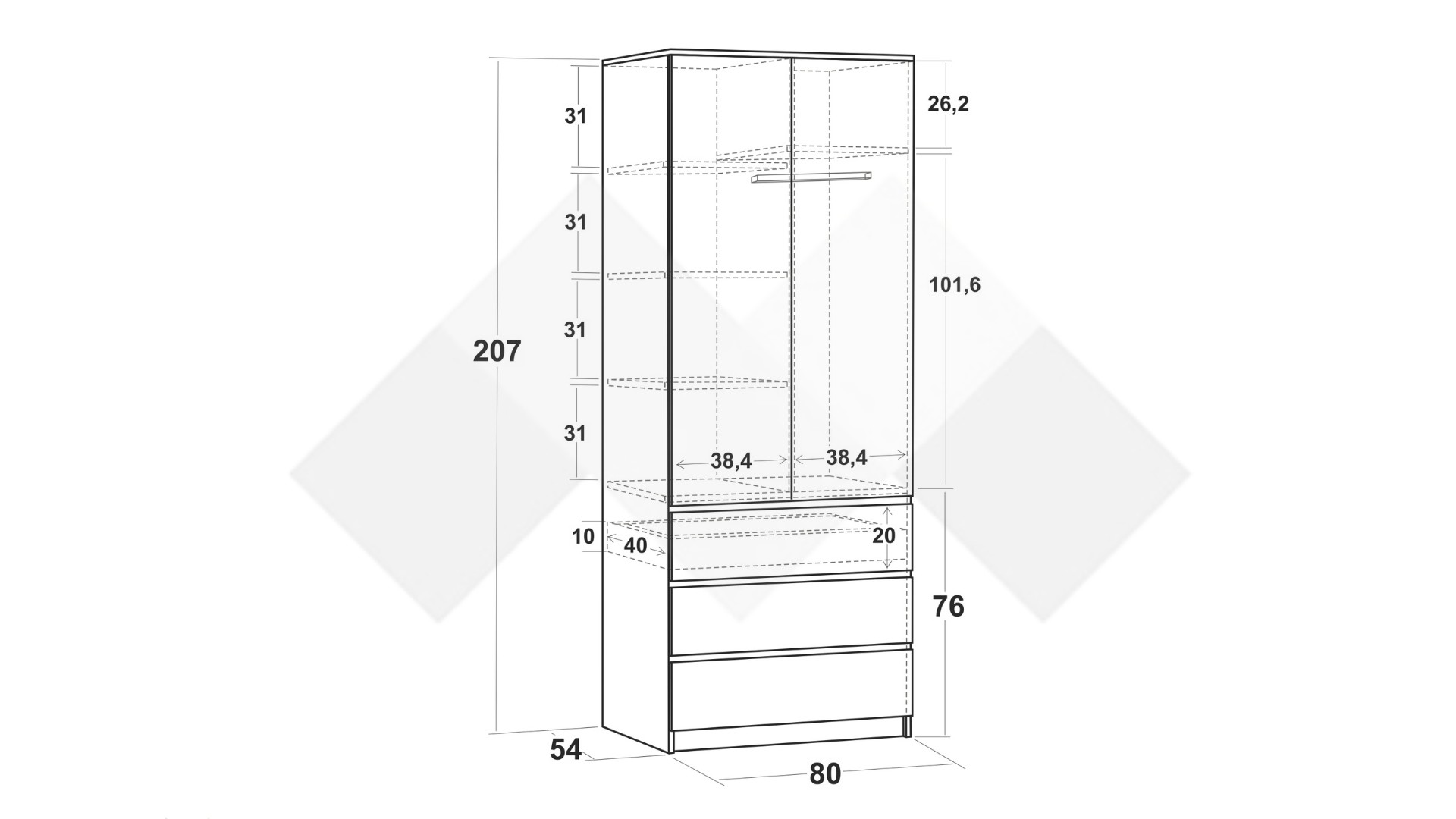 Д: 80 см Ш: 54 см В: 207 см