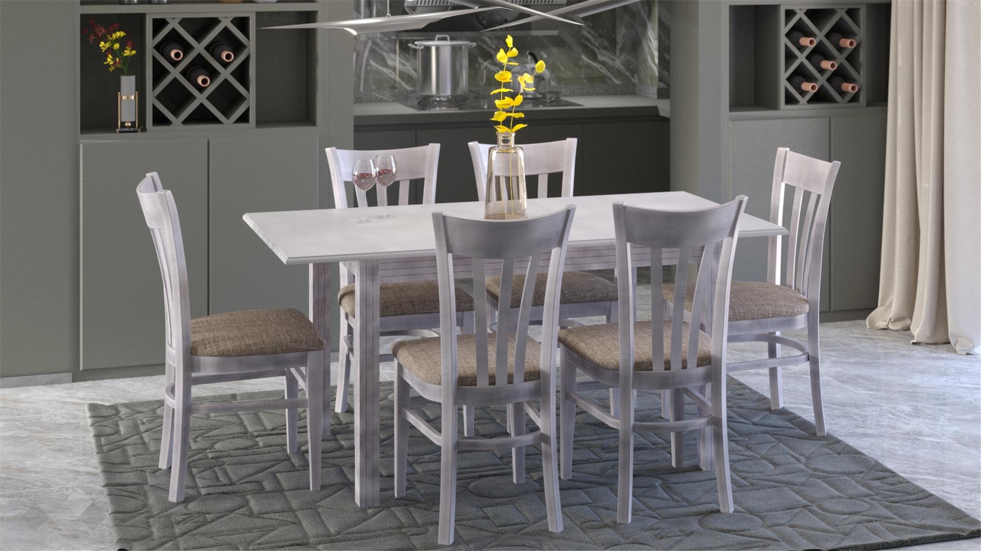 Столът е със здрава конструкция от естествена букова дървесина за устойчивост и стабилност, а лаковото покритие добавя елегантност. Седалката е проектирана с твърда основа, тапицирана с дунапрен за повече комфорт при седене и завършен със здрава текстилна дамаска, лесна за поддръжка.