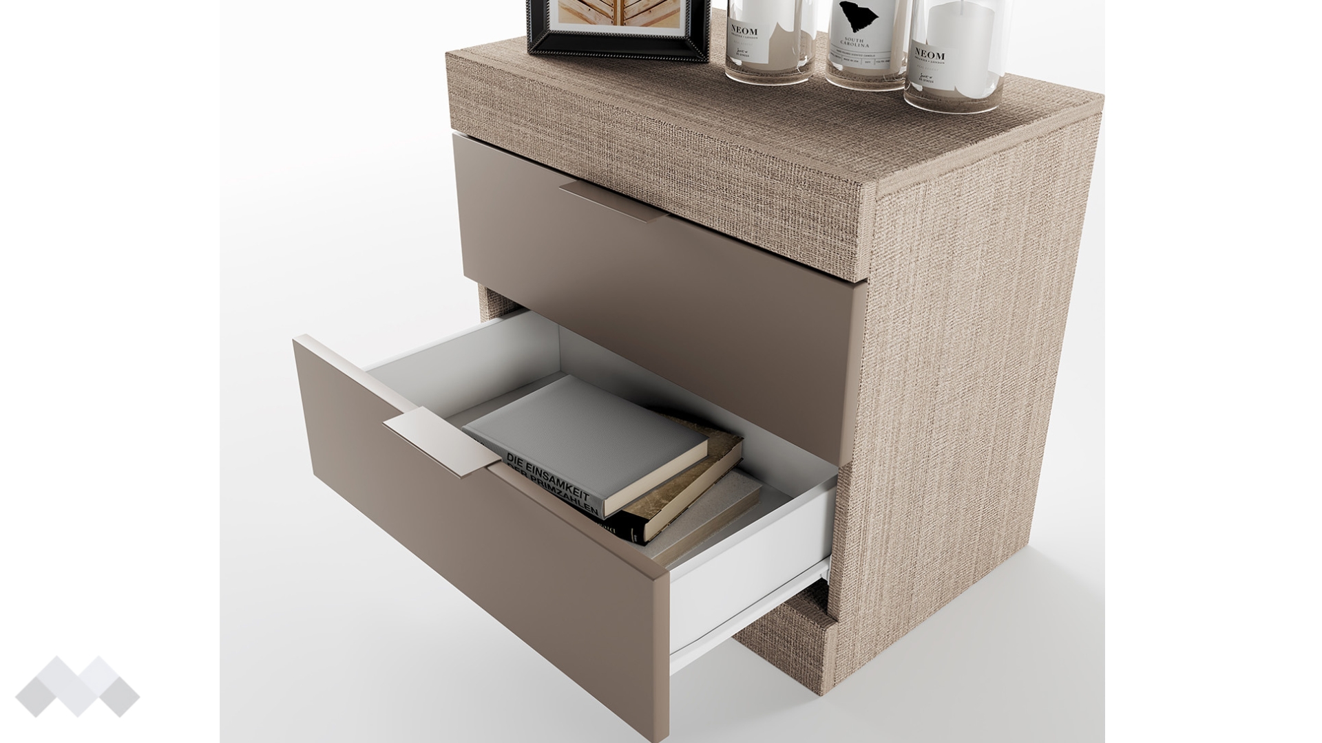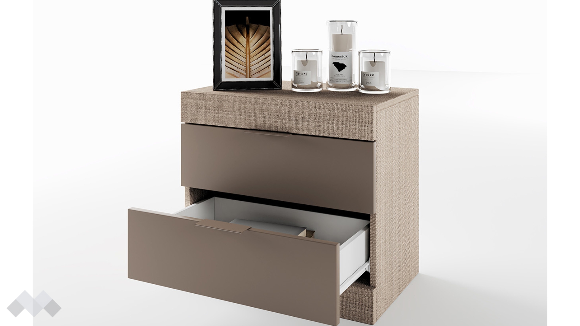 Благодарение на двете чекмеджета лесно ще организираш пространството около леглото. Цветовите комбинации, в които се предлага лесно ще се съчетаят с интериора във всеки един дом. Освен практичен, моделът е изработен от 16 мм ПДЧ, ето защо ще му се наслаждаваш дълго време.