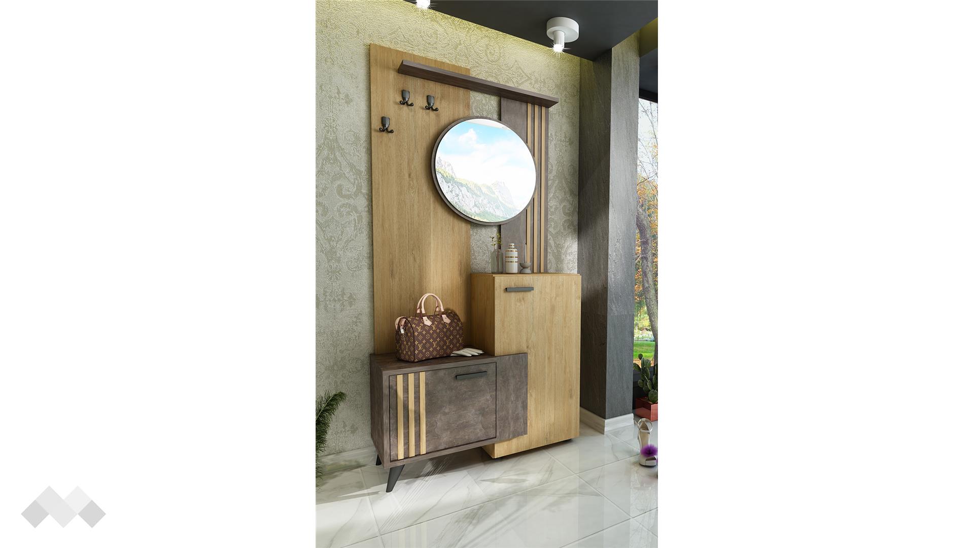 Разполага с два просторни шкафа, където да организираш всичките си обувки. Плотът над тях е удобен за поставяне на козметика или стилна украса и декорация. Това, което ще ти допадне най-много, е огледалото, благодарение на което да хвърлиш бърз поглед на тоалета си и да изпипаш всеки детайл преди да излезеш. Рафтът в горната част е удобен за малки кутии, аксесоари или други необходими за теб вещи. На паното са монтирани три здрави закачалки за якета, палта, шалове или шапки.