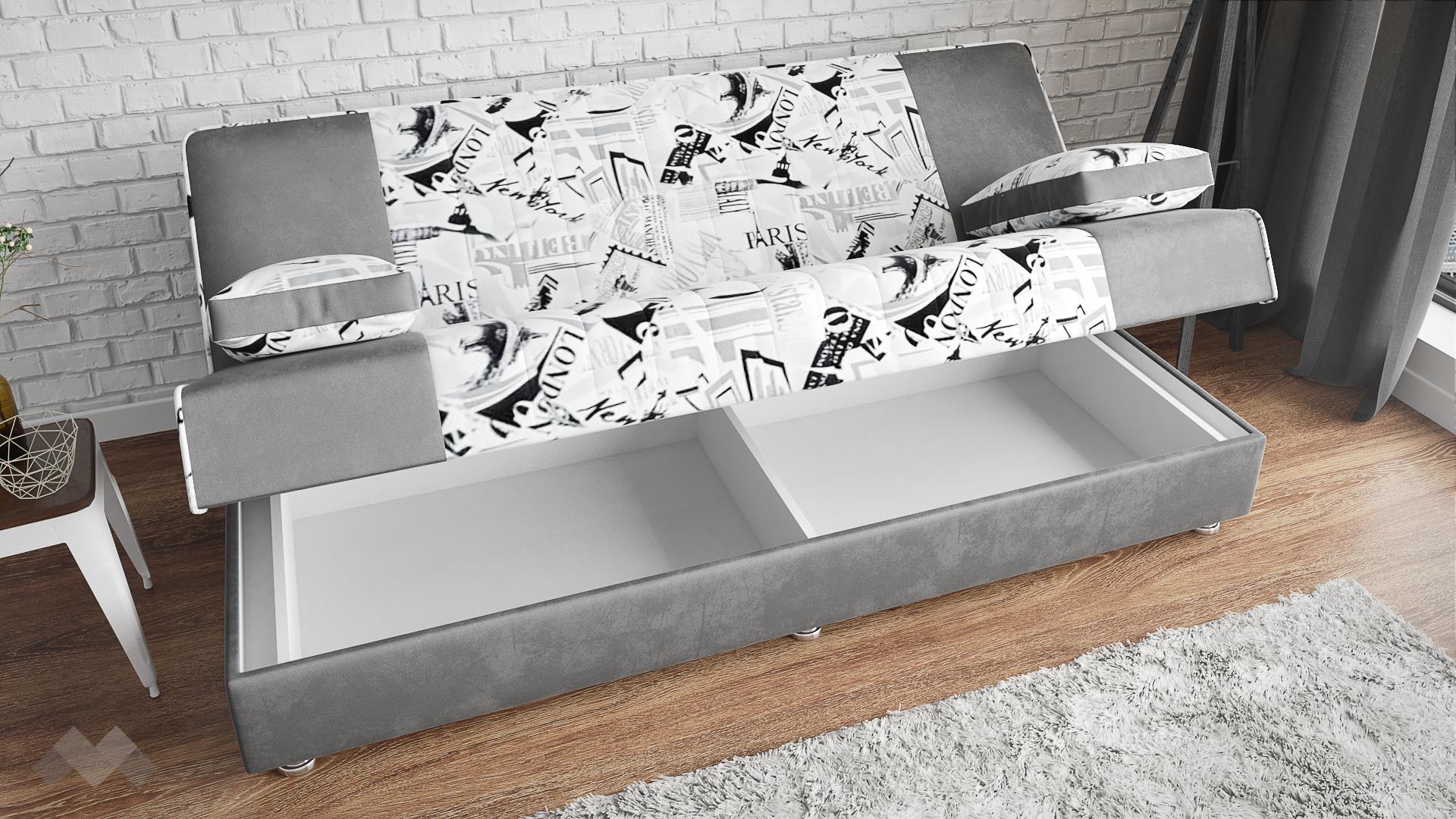 Благодарение на пружинния пакет Бонел, вложен в канапе Рафи, той е по-мек, има леко потъване при сядане и по-голяма мекота при ползване на функция сън. А за да е още по-практично, под цялата седалищна част се намира ракла, в която да прибереш възглавници, завивки и всякакви други вещи.