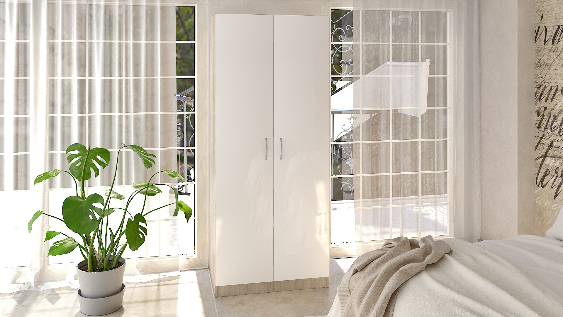 ГардеробРайънсонома арвен с бял гланц двукрилни